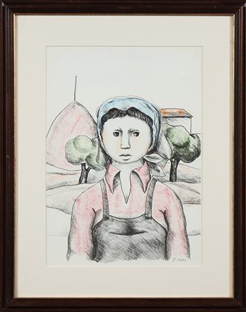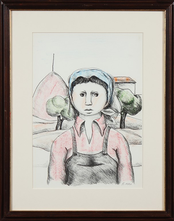MASI ROBERTO (1940 - 2011) Contandina. Pastello su carta. Cm 48,00 x 62,00. Misure lastra:50x35. Firma in basso a destra. Cornice presente