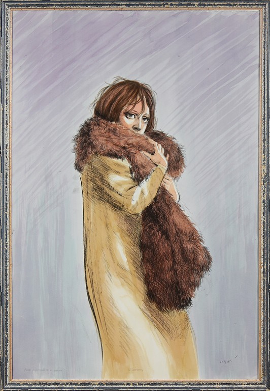 SUGHI ALBERTO (n. 1928) L' inverno. Litografia acquerellata. Cm 65,00 x 95,00. Firma in basso a destra.Titolo in basso a sinistra. Cornice presente