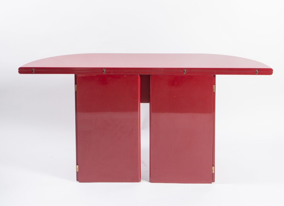 KAZUHIDE TAKAHAMA (Attribuito) Console apribile in legno laccato modello 'Antella'. Prod. Simon ultramobile, Gavina, Italia, 1980 ca. Cm 74x160x90