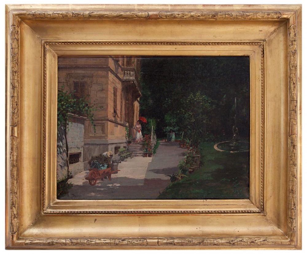 Alberto Rossi Torino 1858 - 1936 In giardino Olio su tela cm 34x47,5