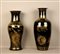 Firmato. Coppia di vasi in porcellana fondo nero con decorazioni in oro...