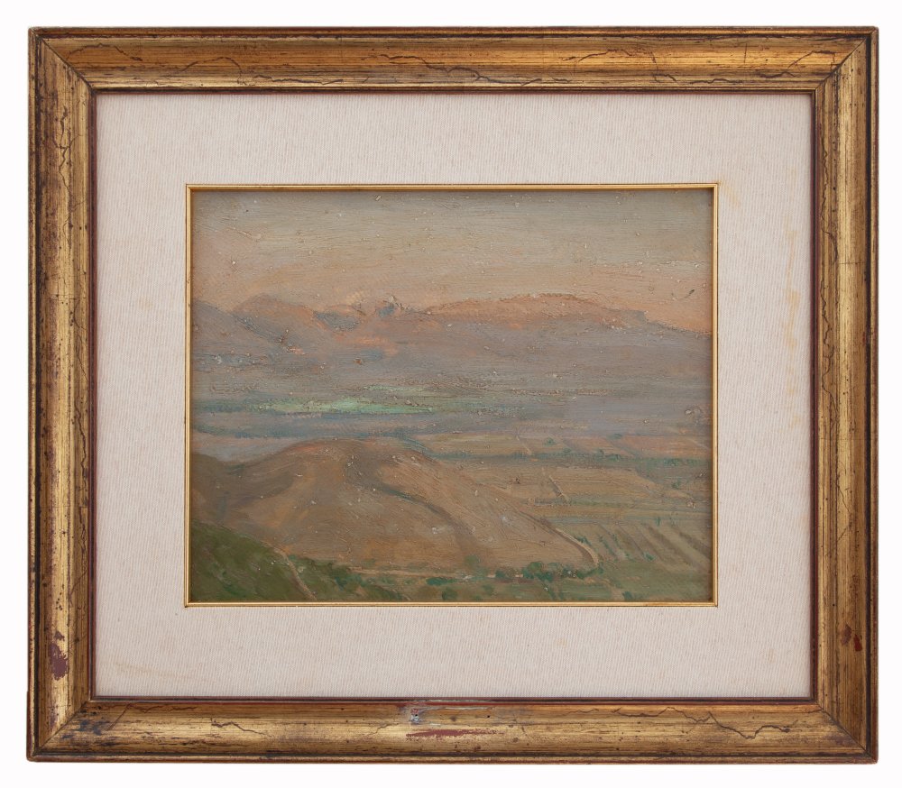 Luigi Zago Villafranca di Verona 1894 - Mendoza 1952 Piana di Assisi 1924 Olio su tavola cm 30x38