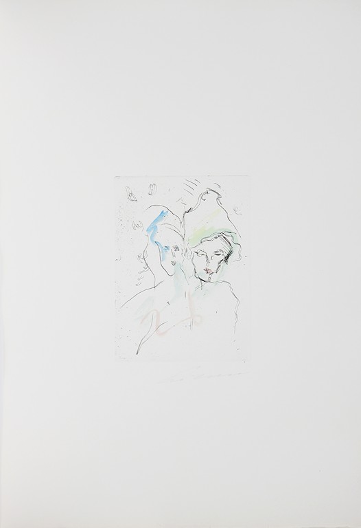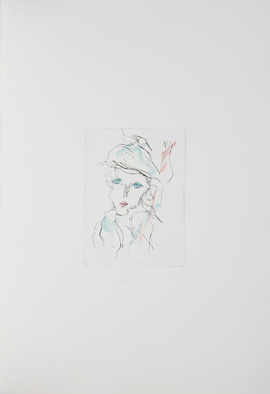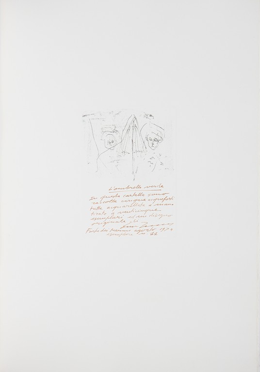 TRECCANI ERNESTO (1920 - 2009) L' ombrello verde e un disegno. 1974. Acquaforte. Cm 35,00 x 50,00. Cartella composta da n.5 acqueforti e un disegno. Tutte le opere sono firmate.