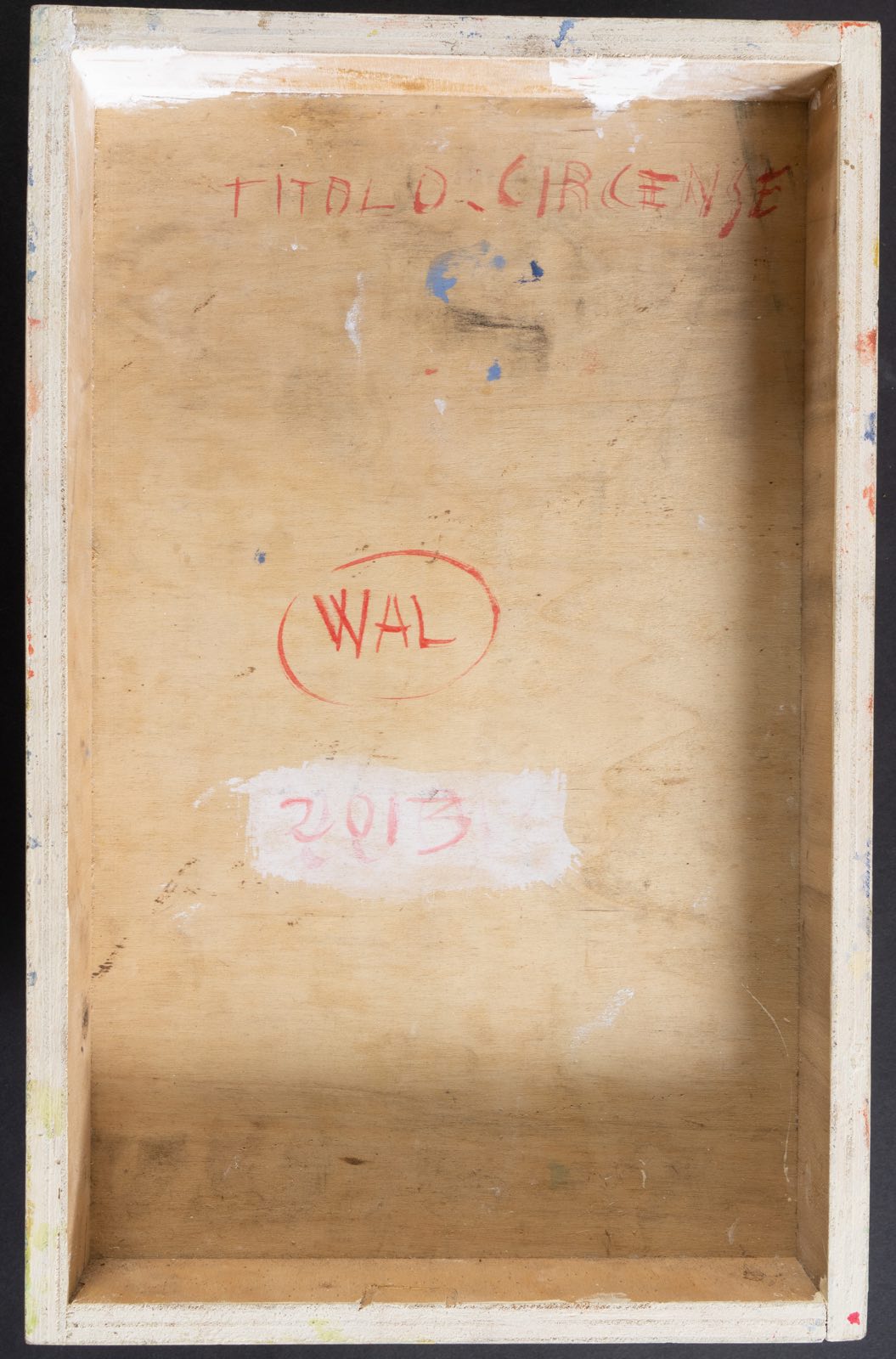 Walter Guidobaldi detto Wal (Roncolo di Quattro Castella 1949), “Circense”, 2013.Tecnica mista su tavola, firmata in basso a destra, reca al retro titolo e data, H cm 37x24x10