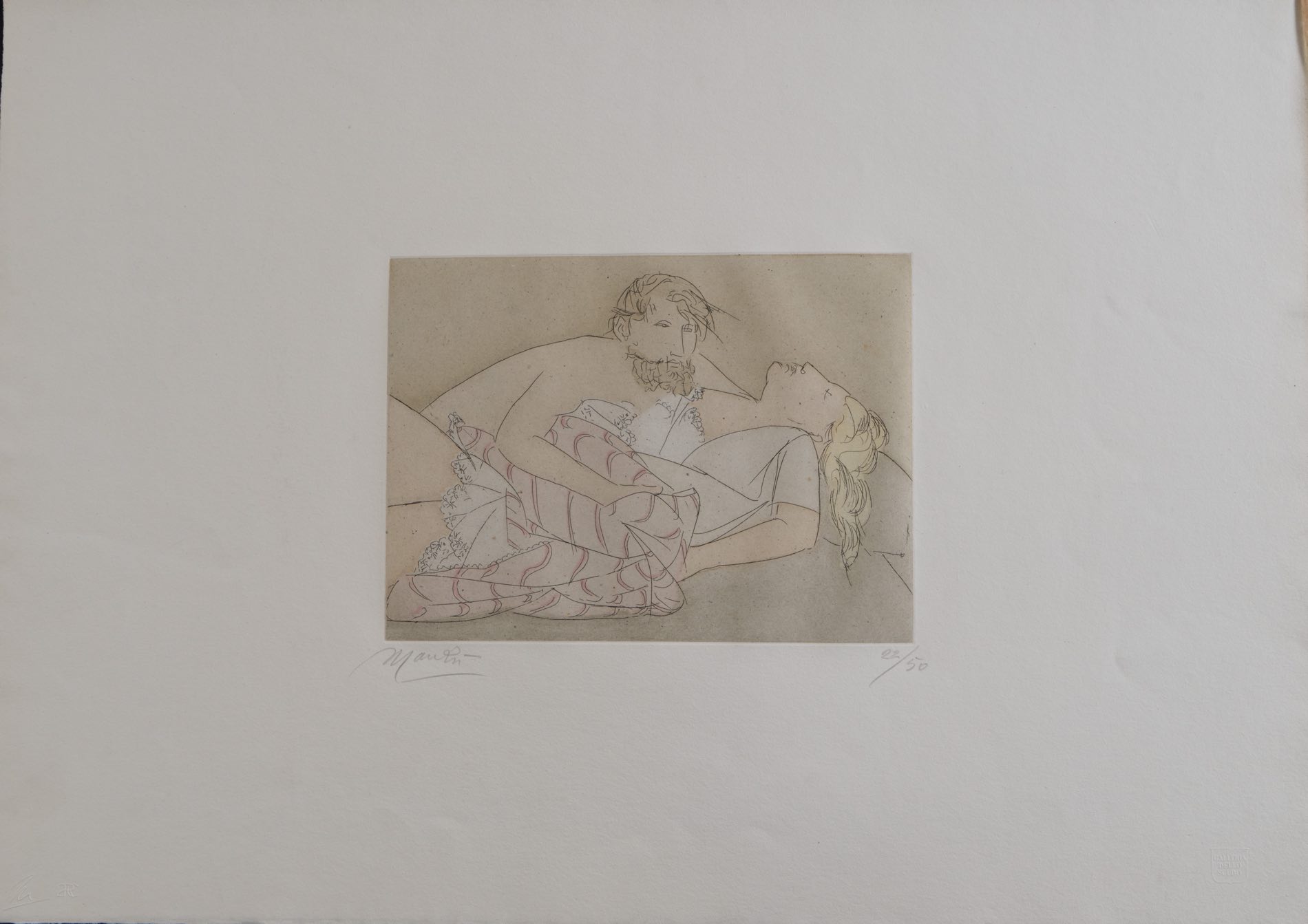 Giacomo Manzù (Bergamo 1908 - Roma 1991), “Gli amanti”.Litografia a colori su carta, firmata