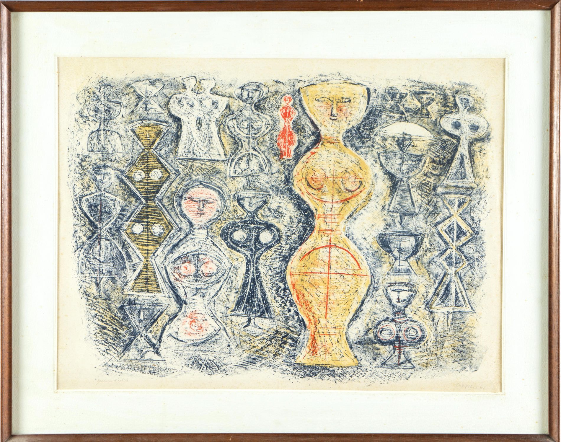 Massimo Campigli (Berlino 1895 - Saint- Tropez 1971), “Senza titolo”, 1960.Litografia a colori