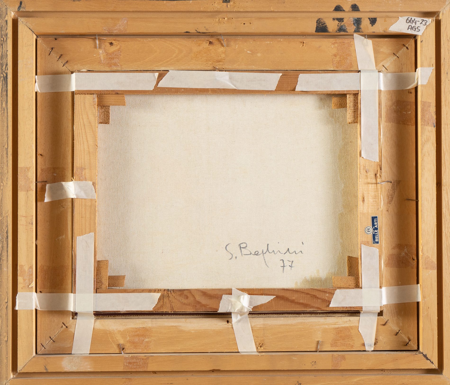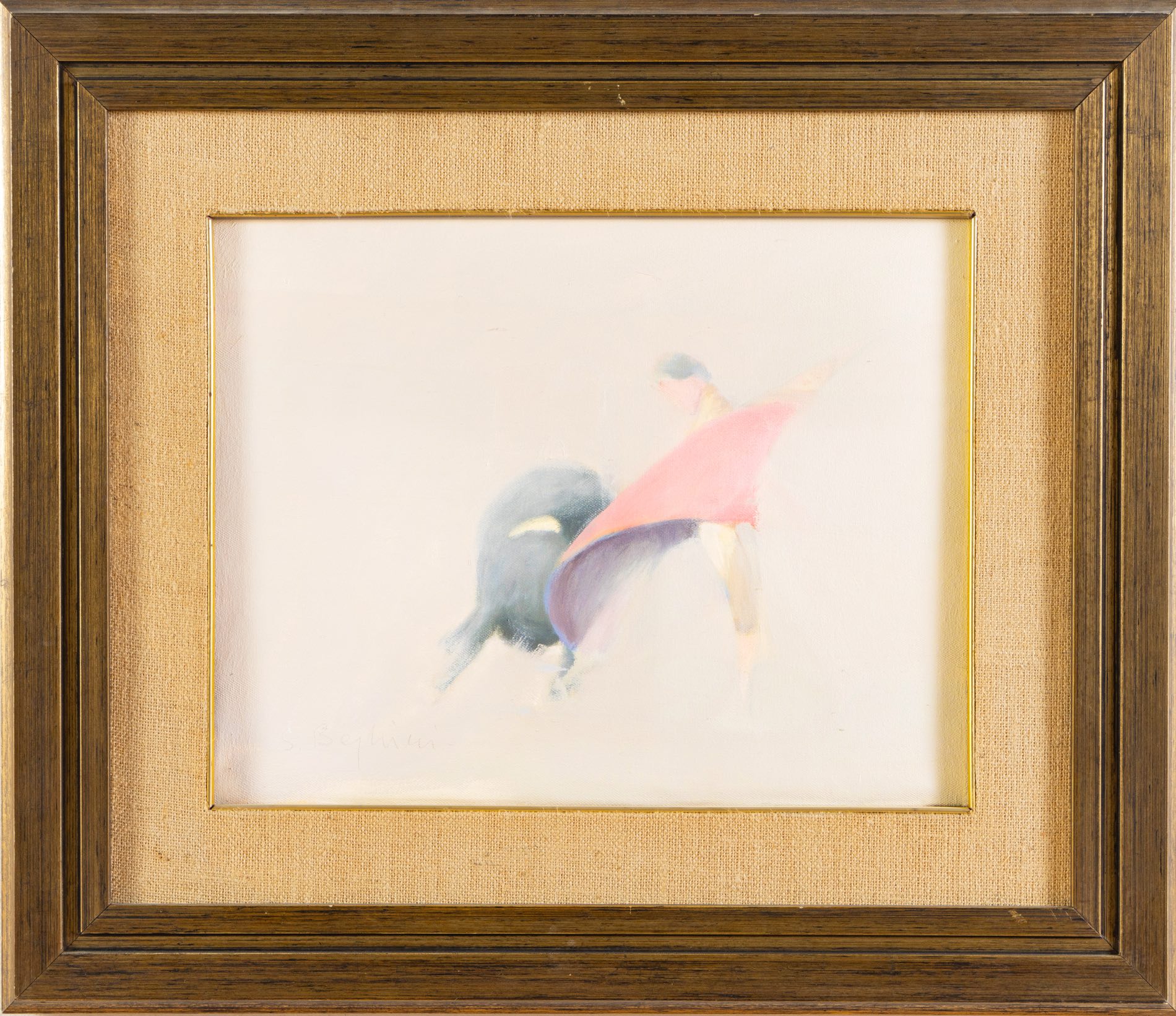 Sandro Beghini (XX-XXI secolo), “La Corrida”, 1977.Olio su tela, firmato in basso a sinistra, reca al retro firma e data, H cm 35x45