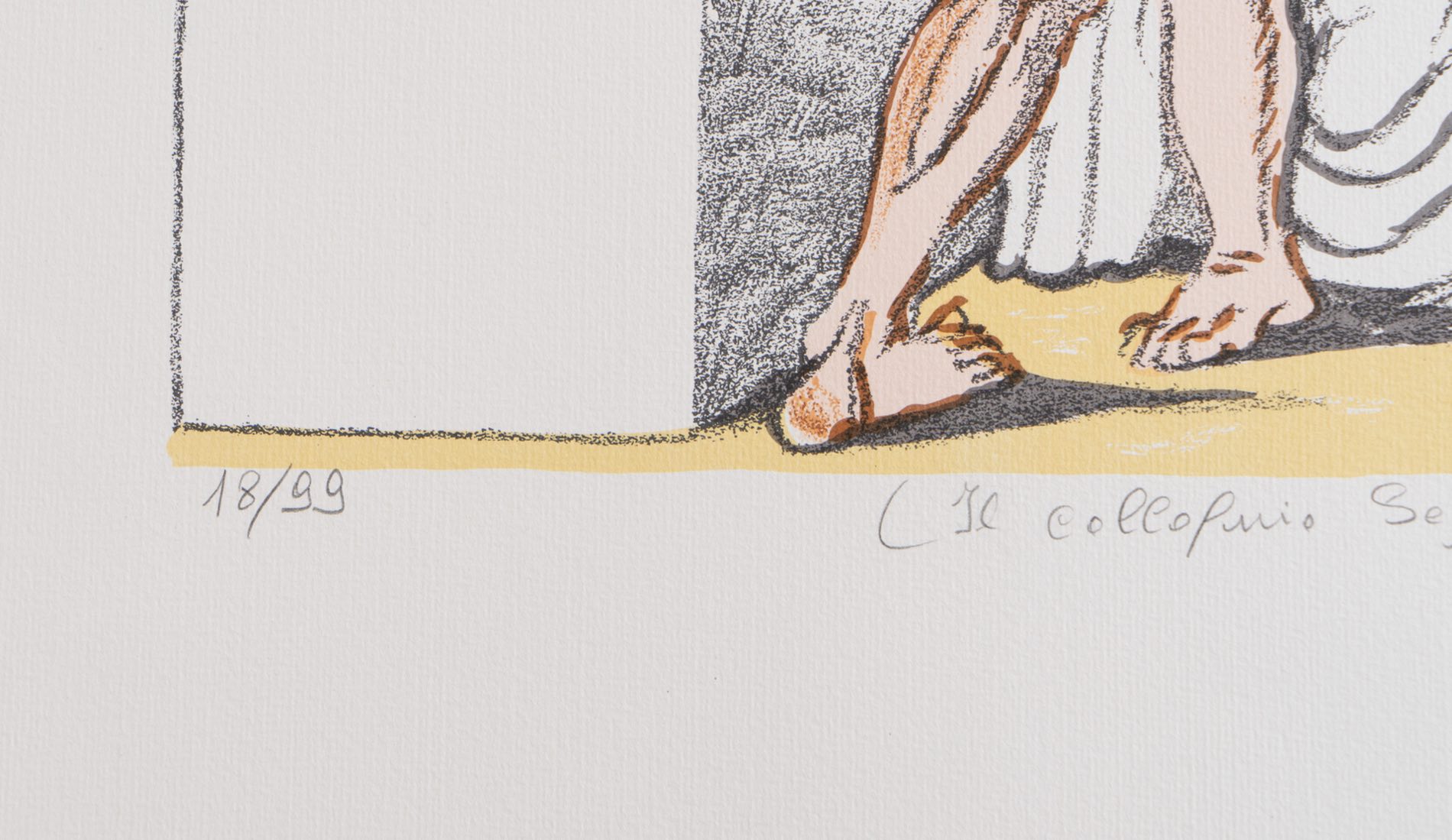 Giorgio De Chirico (Volo 1888 - Roma 1978), “Il colloquio Segreto”.Litografia a colori su carta, firmata in basso a destra, numero di tiratura in basso a sinistra 18/99, reca in basso al centro titolo e timbri a secco GdC e Alberto Caprini Stampatore in Roma, Foglio H cm 68x49