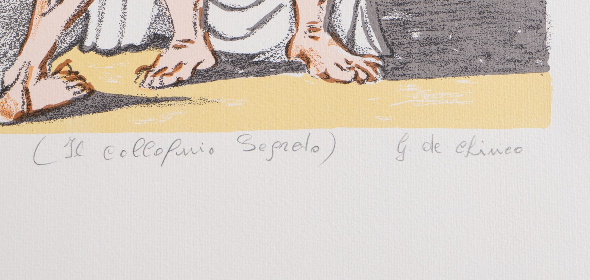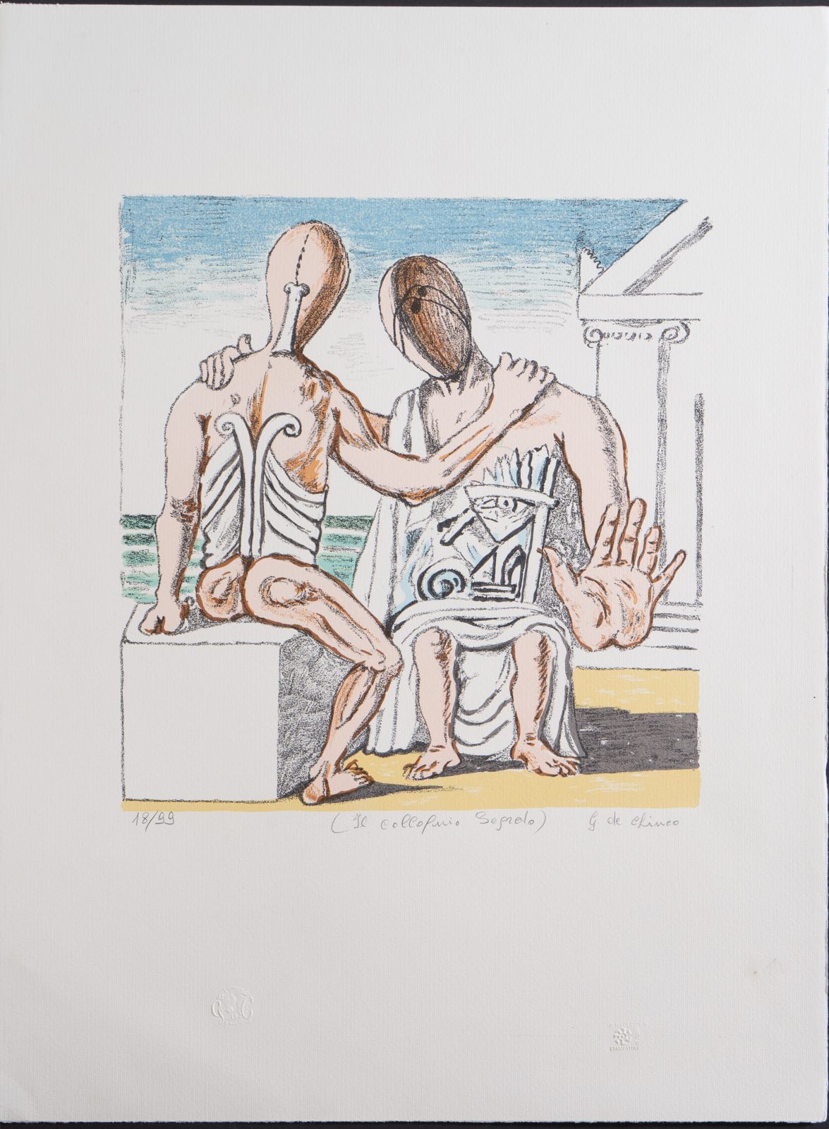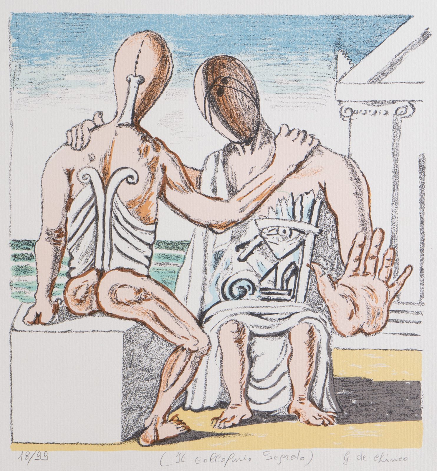 Giorgio De Chirico (Volo 1888 - Roma 1978), “Il colloquio Segreto”.Litografia a colori su