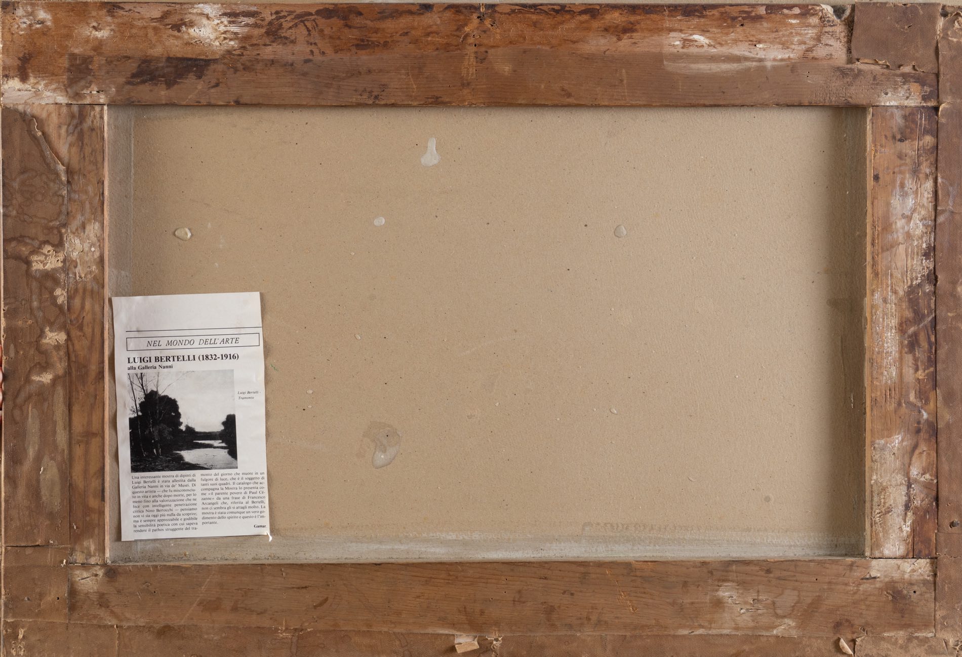 Luigi Bertelli (San Lazzaro di Savena 1833 - Bologna 1916), “Paesaggio al tramonto”, 1900.Olio magro su carta applicata a cartoncino, firmato e datato in basso a sinistra, H cm 52x75 (lievi difetti)