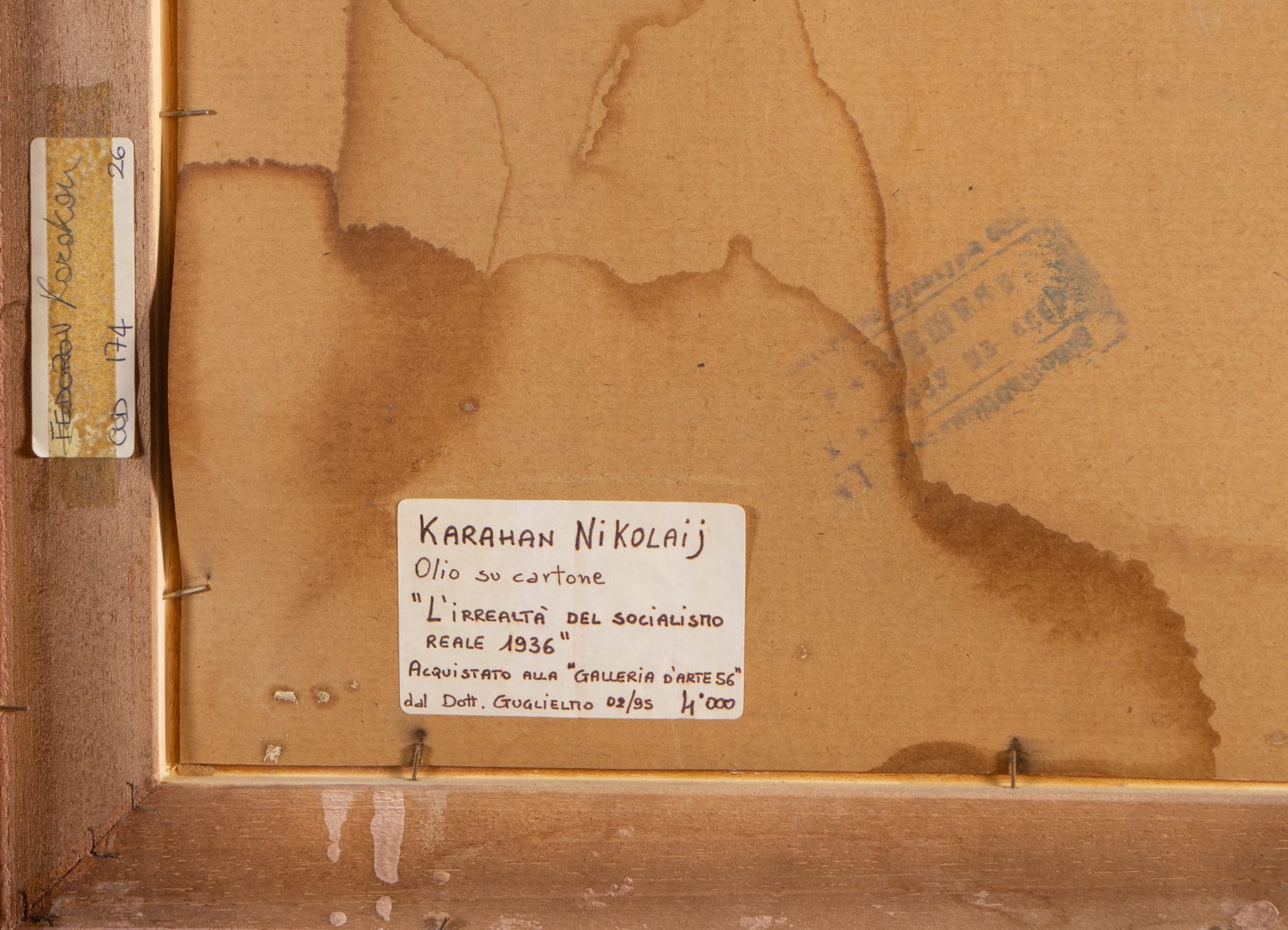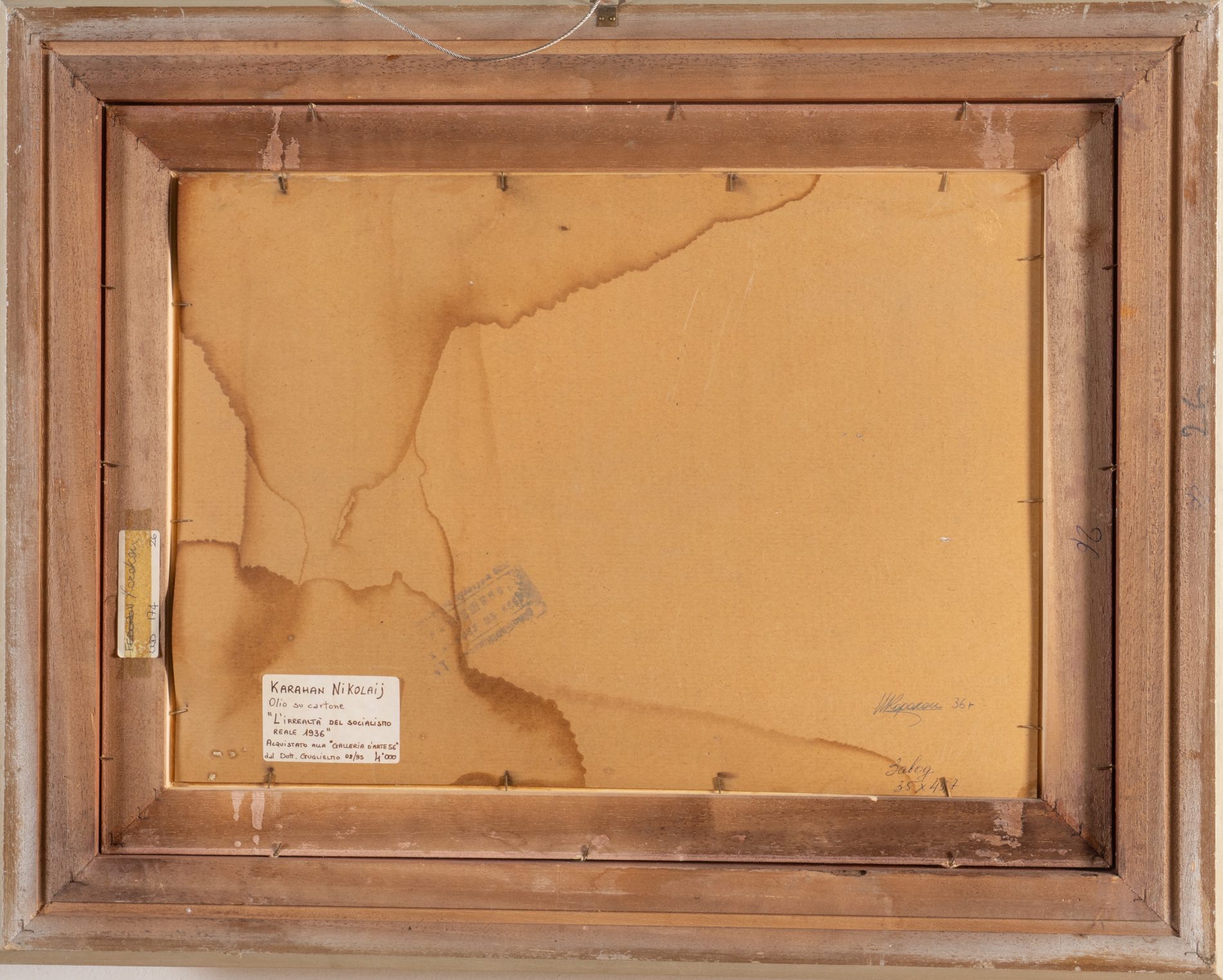 Nicolaij Karahan (Nagarno-Karabah 1900 - 1970), “L’irrealtà del socialismo reale 1936”.Olio su cartone, reca al retro timbro ed etichetta, H cm 35x48