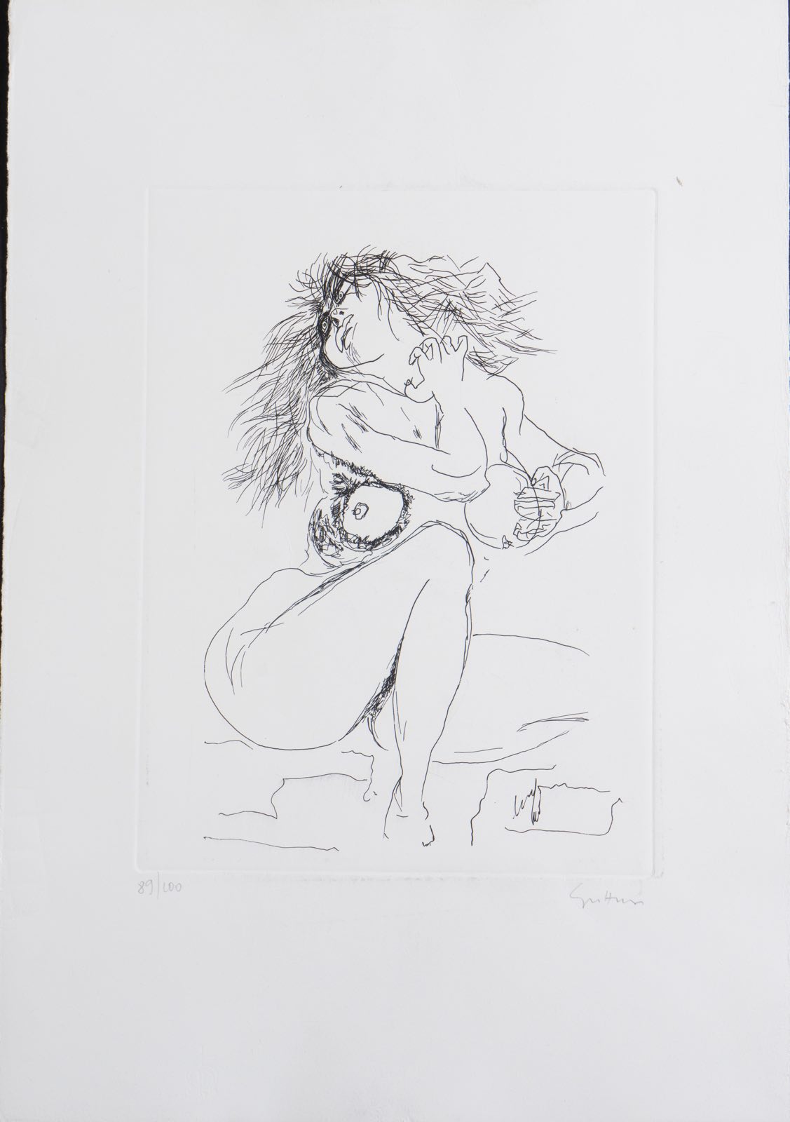 Renato Guttuso (Bagheria 1911 - Roma 1987), “Nudo”.Litografia su carta, firmata in basso a destra, numero di tiratura in basso a sinistra 89/100, Lastra H cm 30.5x22.5 - Foglio H cm 50x35