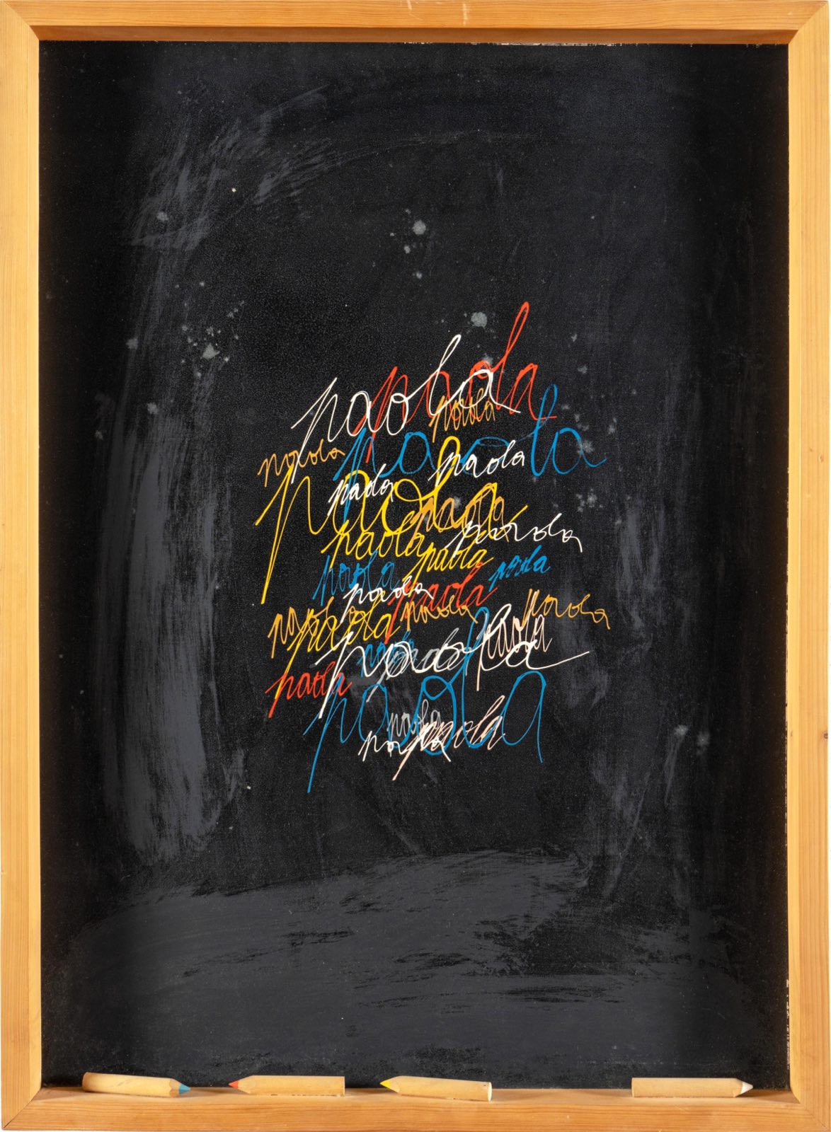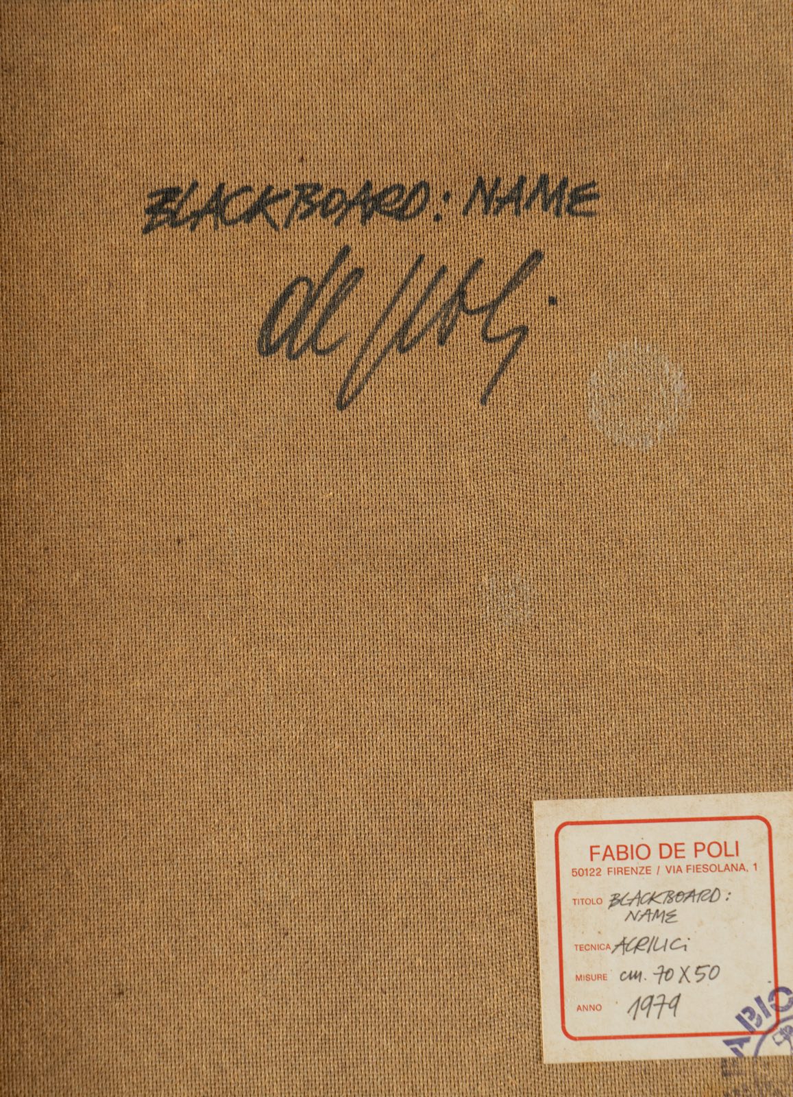 Fabio de Poli (Genova 1947), “Blackboard: name”, 1979.Acrilici su masonite, reca al retro