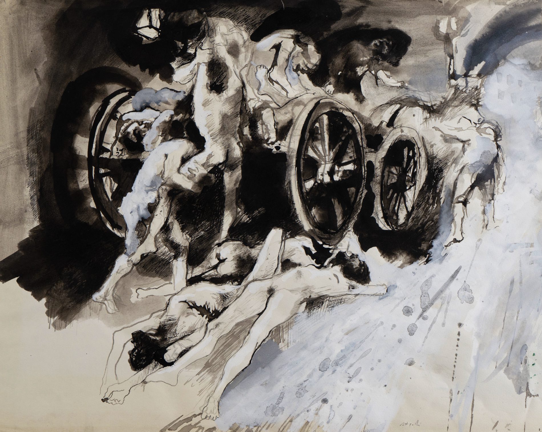 Ugo Attardi (Sori 1923 - Roma 2006), “Senza titolo”.Tecnica mista su carta, firmato in basso a destra, H cm 50x62