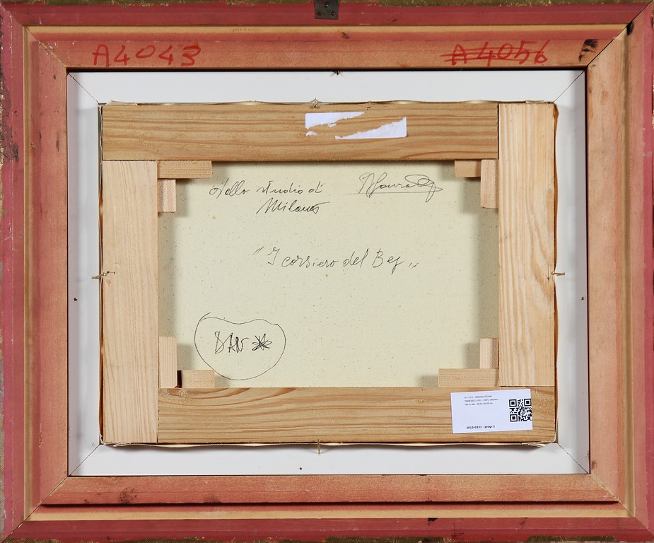 GONZAGA GIOVAN FRANCESCO (1921 - 2007) I corsiero del Bef. Olio su tela . Cm 30,00 x 40,00. Firma in basso a sinistra. Al retro titolo e firma. Cornice presente