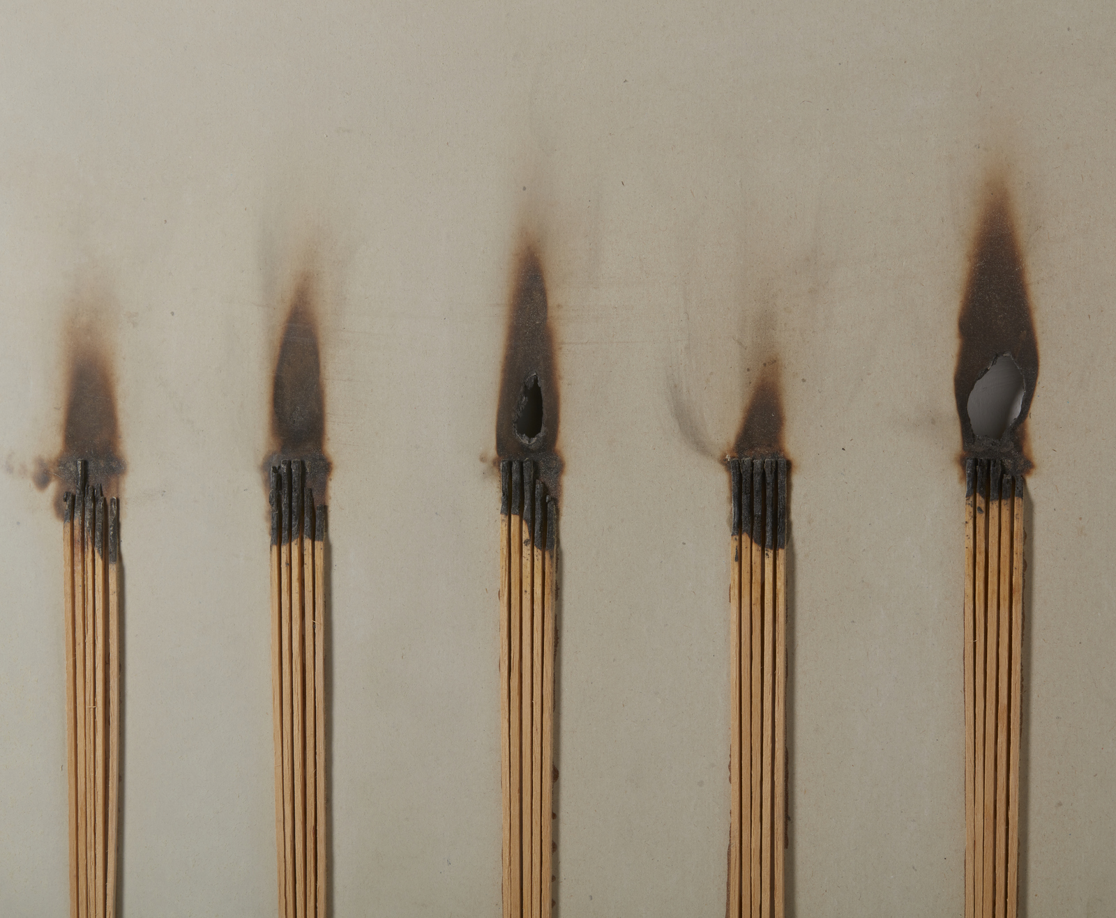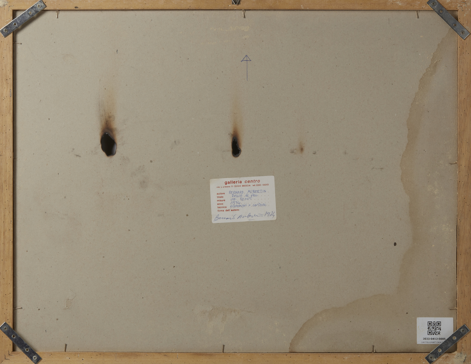 AUBERTIN BERNARD (1934 - 2015) Dessin de feu. 1974. Fiammiferi su cartone. Cm 63,50 x 48,50. Al retro cartiglio descrittivo Galleria Centro, Brescia con firma e anno. Esposizione: Galleria Arte Centro, Brescia. Provenienza: Galleria Arte Centro, Brescia; Giò Arte, Mestre; Collezione privata, Napoli. Dichiarazione di provenienza Giò Arte, Mestre. Lievi difetti.