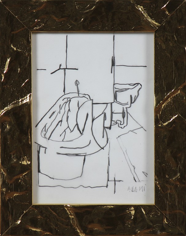 ANONIMO Senza titolo. Matita su carta. Cm 18,00 x 13,00. Firmato Adami in basso a destra a matita. Cornice presente
