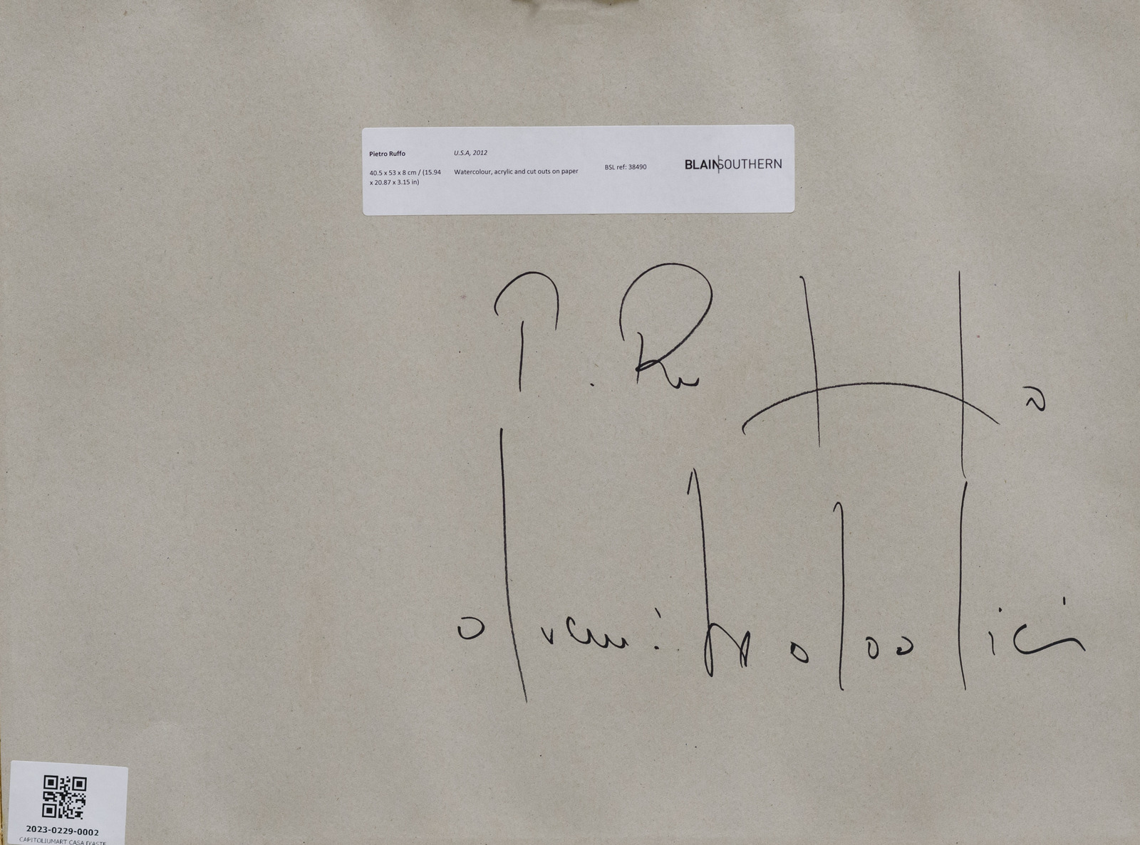 RUFFO PIETRO (n. 1978) USA Spring. 2012. Tecnica mista su carta. Cm 53,80 x 40,50 x 8,00. Firma al retro. Certificato di provenienza Galerie Italienne, Parigi. Cornice presente