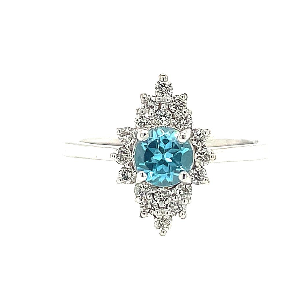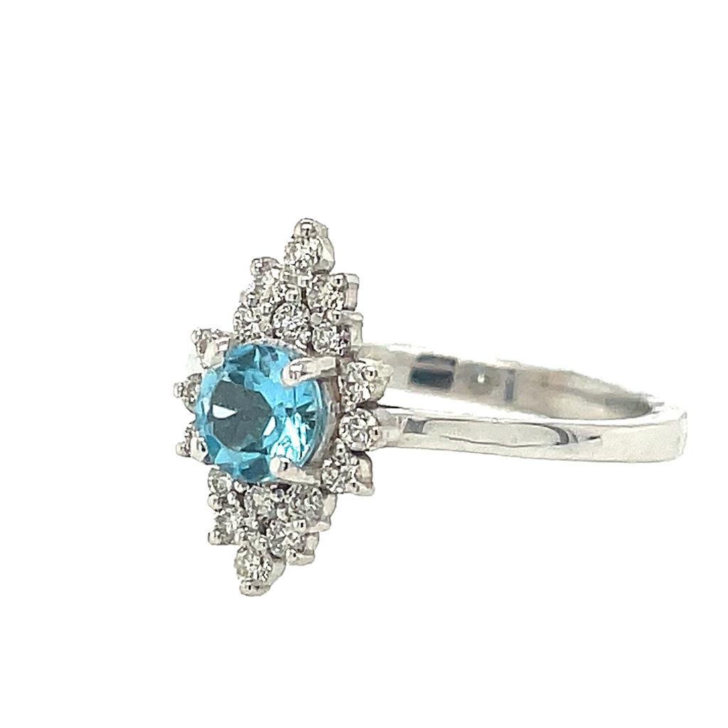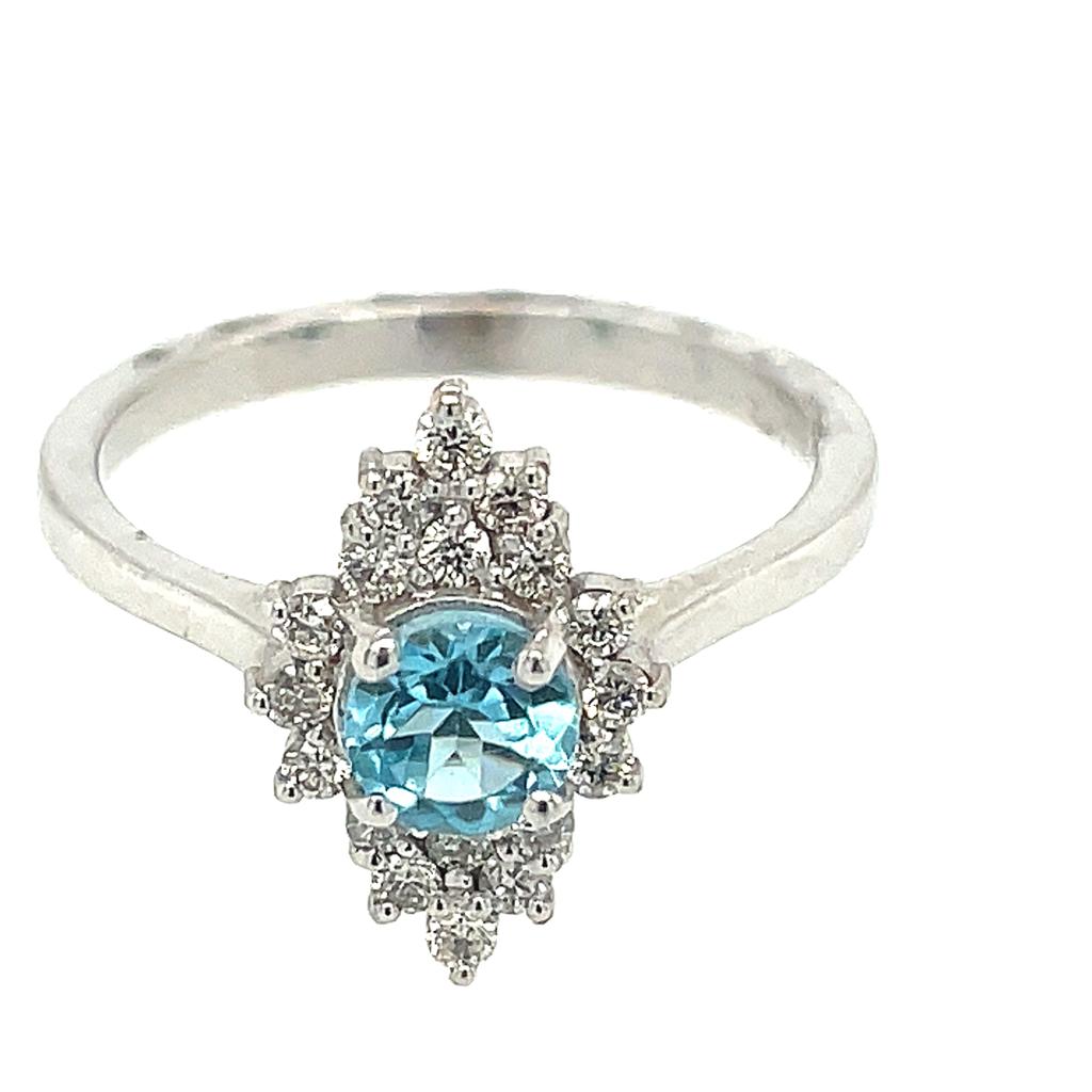 ANELLO IN ORO BIANCO 14K 2.82 GR CON TOPAZIO 0.50 CT + DIAMANTI PER 0.28 CT TOTALI F/VS CERTIFICATO ID - A1309R