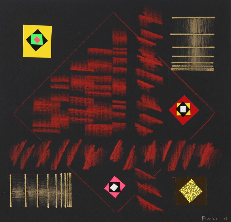 FINZI ENNIO (n. 1931) Senza titolo. 2013. Tecnica mista su cartoncino. Cm 35,00 x 33,50. Firma e data in basso a destra. Autentica dell'artista su fotografia.