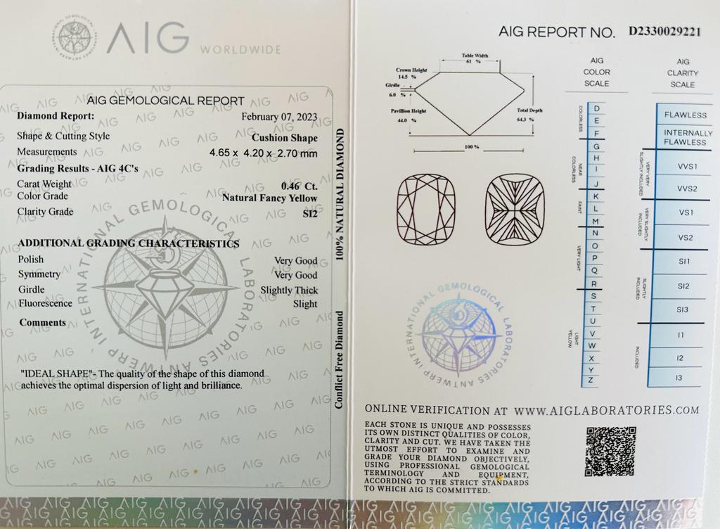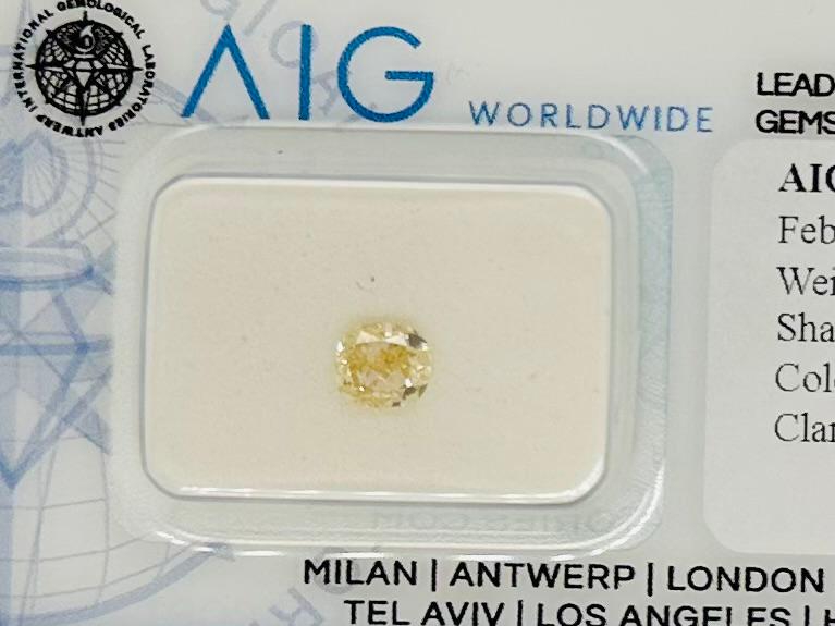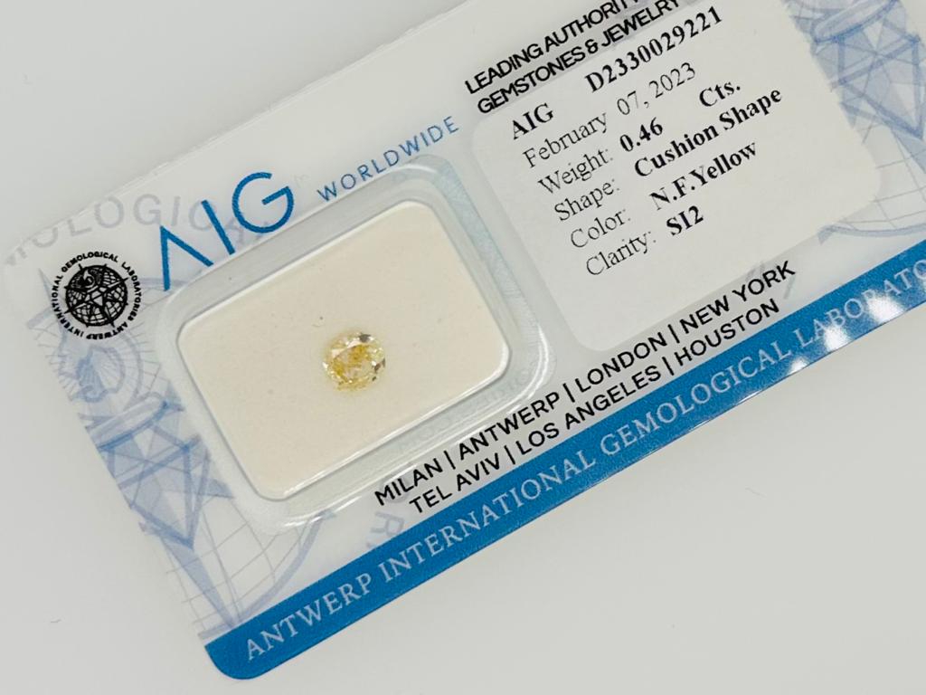 DIAMANTE 0,46 CT NATURAL FANCY GIALLO - PUREZZA SI2 - TAGLIO CUSCINO - CERTIFICATO AIG - UD30121-2