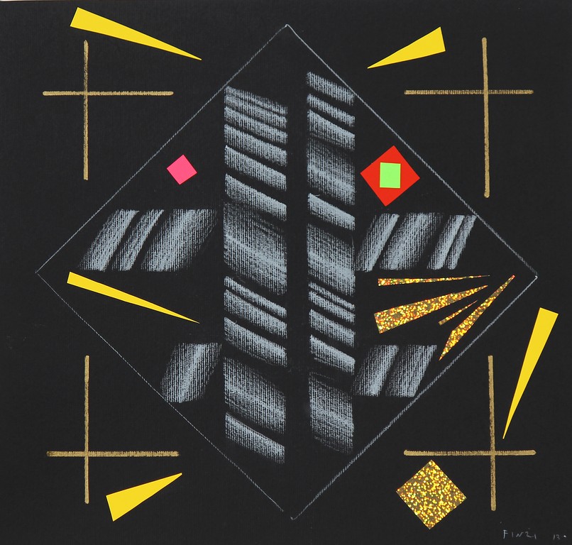FINZI ENNIO (n. 1931) Senza titolo. 2013. Tecnica mista su cartoncino. Cm 35,00 x 33,50. Firma e data in basso a destra. Autentica dell'artista su fotografia.