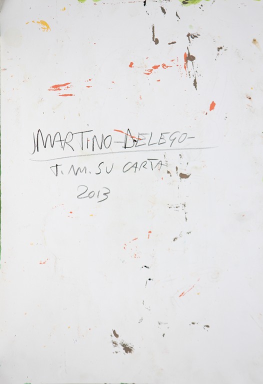 DELEGO MARTINO (n. 1956) Il musico errante. 2013. Tecnica mista su carta. Cm 33,00 x 47,50. Firma e data in basso a destra. Al retro firma e data. Autentica dell'artista su fotografia.