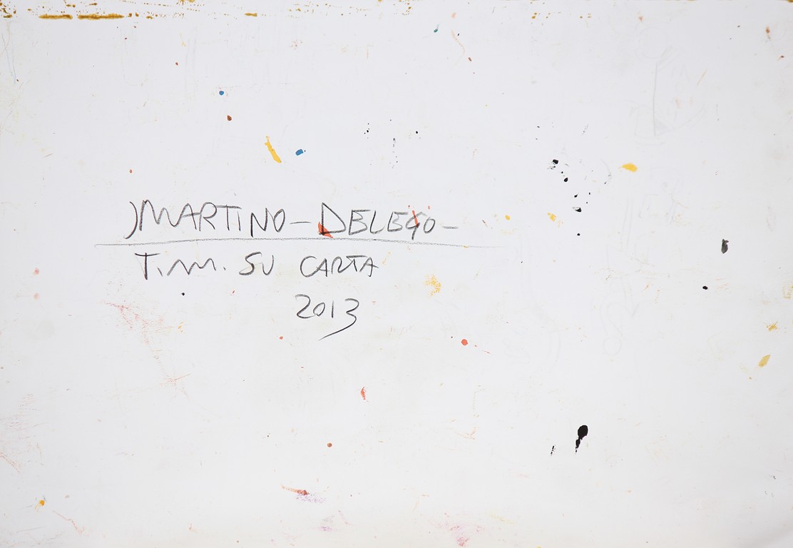 DELEGO MARTINO (n. 1956) I funamboli burloni. 2013. Tecnica mista su carta. Cm 47,50 x 33,00. Firma e data in basso a destra. Al retro firma e data. Autentica dell'artista su fotografia.