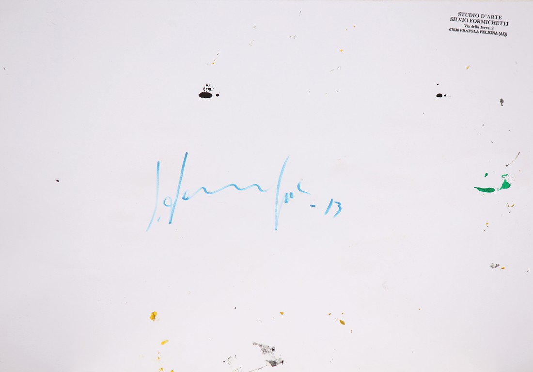 FORMICHETTI SILVIO (n. 1969) Senza titolo. 2013. Olio su carta. Cm 50,00 x 35,00. Firma in basso a destra. Al retro firma, data e timbro dello Studio d'arte Silvio Formichetti, Pratola Peligna (AQ). Autentica dell'artista su fotografia.