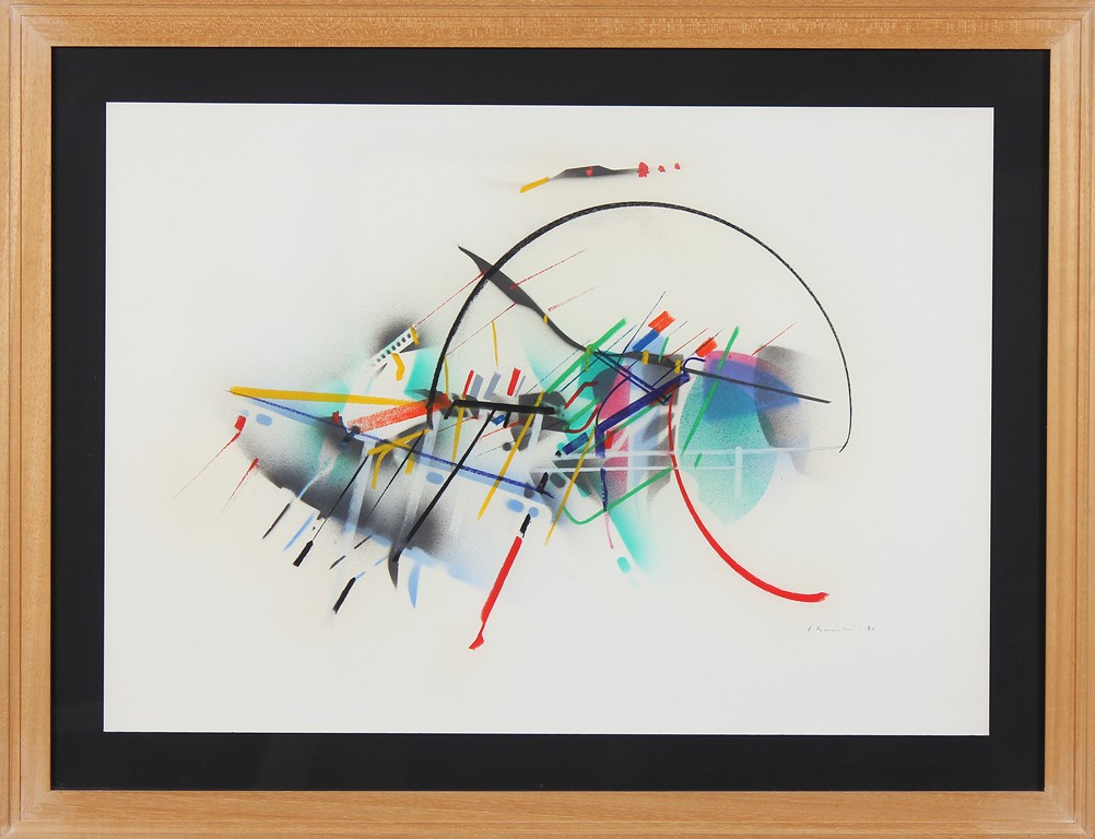 FRANCESCHINI EDOARDO (1928 - 2006) Senza titolo. 1980. Tecnica mista su carta. Cm 70,00 x 50,00. Firma e anno in basso a destra. Cornice presente