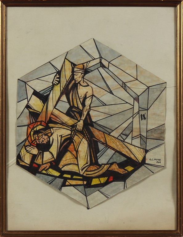 ANONIMO Senza titolo. 1968. Tecnica mista su carta. Cm 40,00 x 45,00. Firma G. C. Mussi e data in basso a destra. Cornice presente