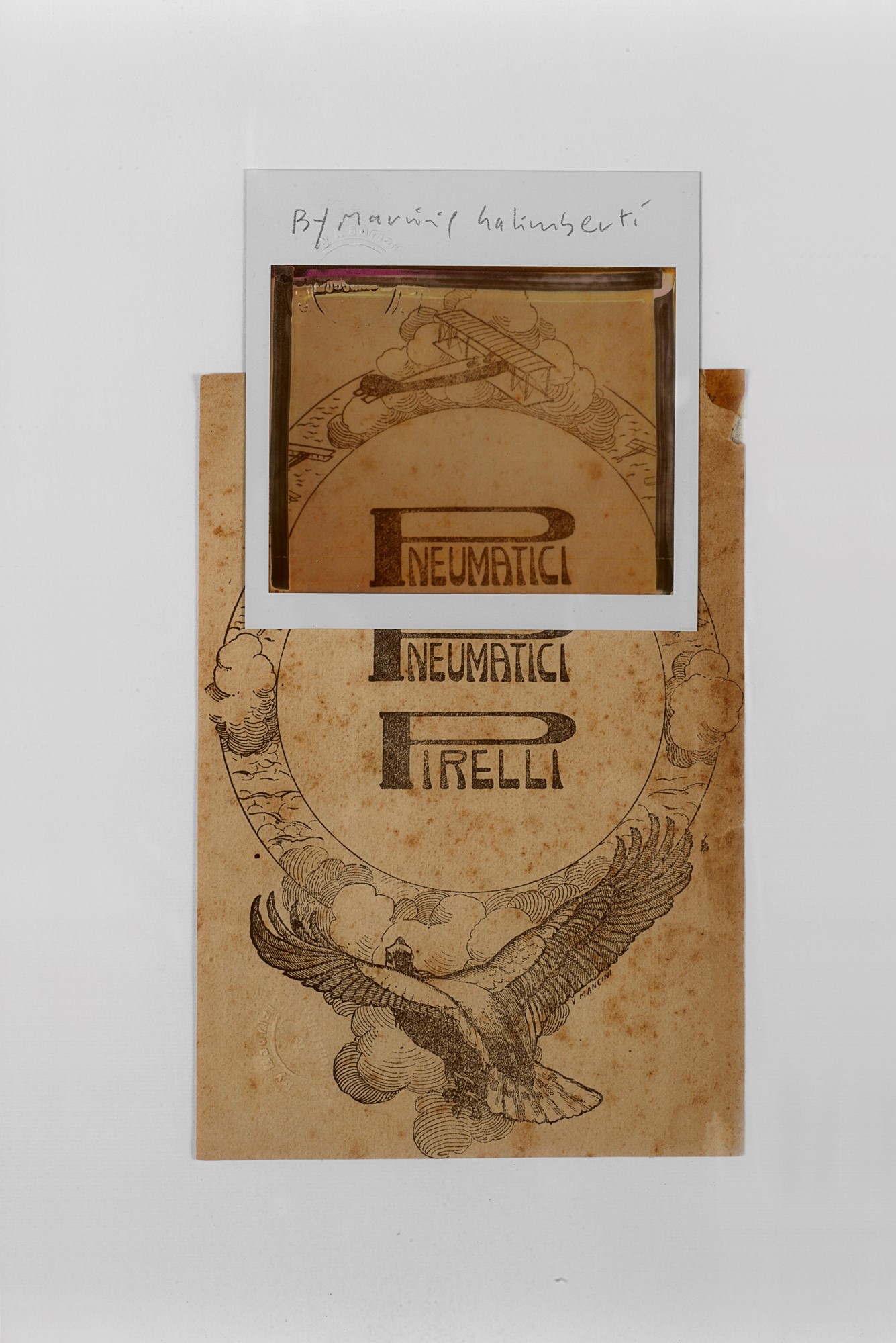 Firmata a matita al margine bianco inferiore recto della polaroid con timbri a secco del fotografo sulla polaroid e sulla cartolina