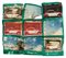 Nove polaroid montate a mosaico dipinte, manipolate e bruciate applicate su tavola sotto teca in plexiglass