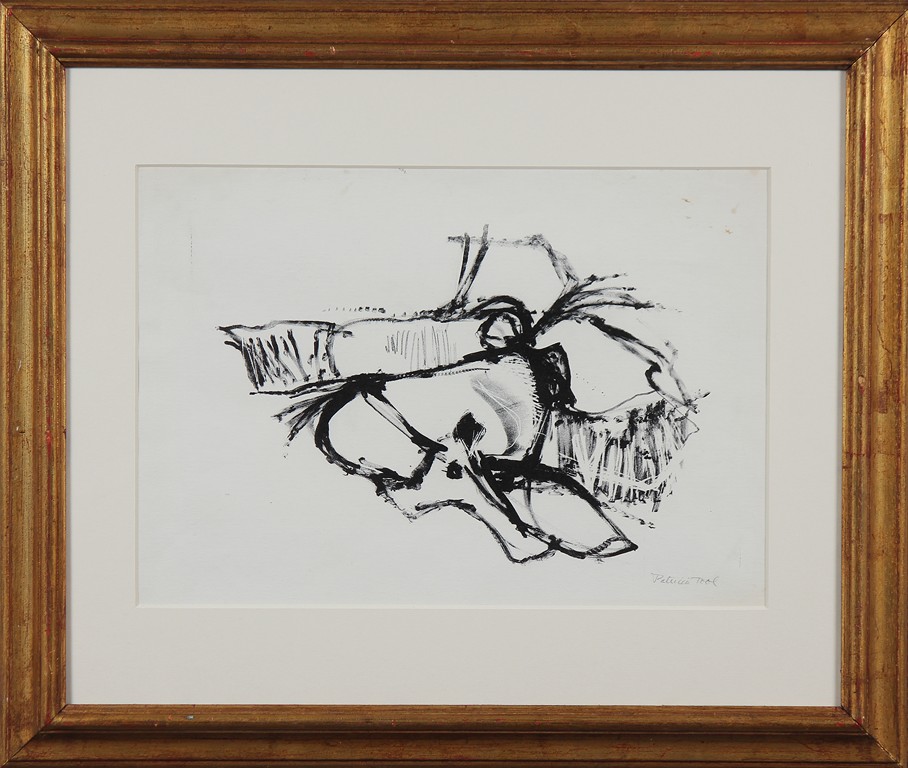 ANONIMO Senza titolo. Carboncino su carta. Cm 33,00 x 47,00. Firmato in basso a destra. Cornice presente