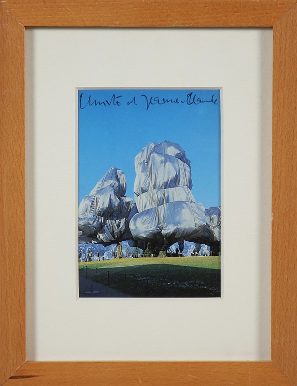 CHRISTO' (n. 1935) & JEANNE-CLAUDE (1935 - 2009) Senza titolo. Cartolina. Cm 14,00 x 9,00. Firma in alto. Cornice presente