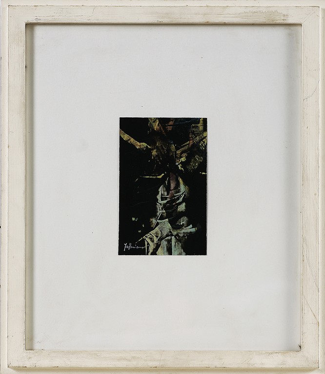 Senza titolo. Tecnica mista su carta. Cm 8,00 x 12,00. Firma in basso a sinistra. Cornice presente