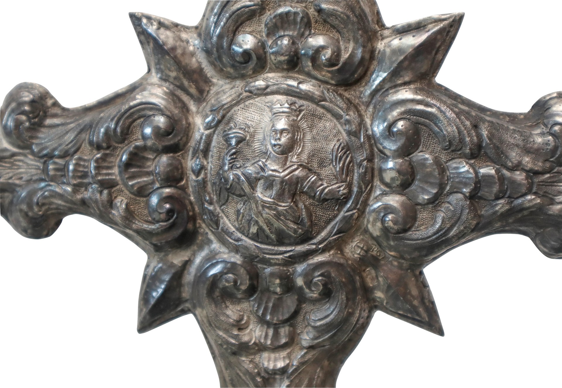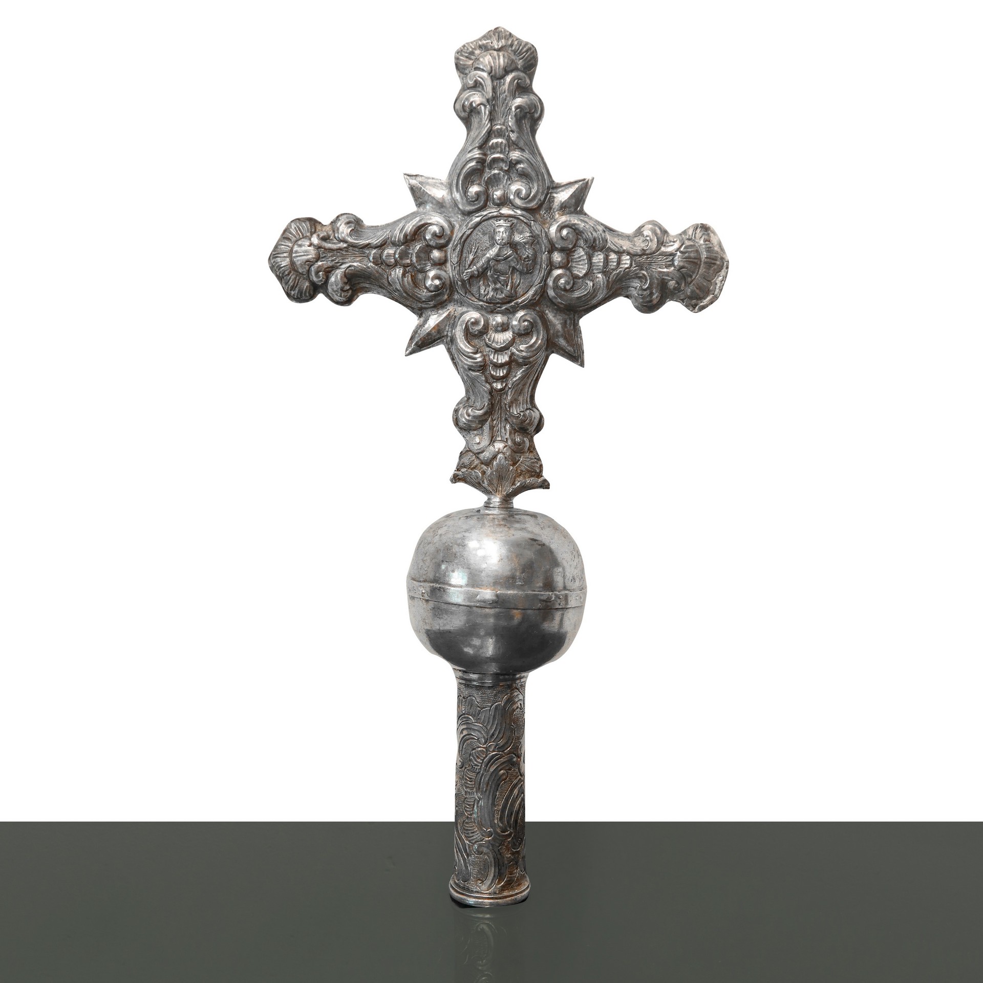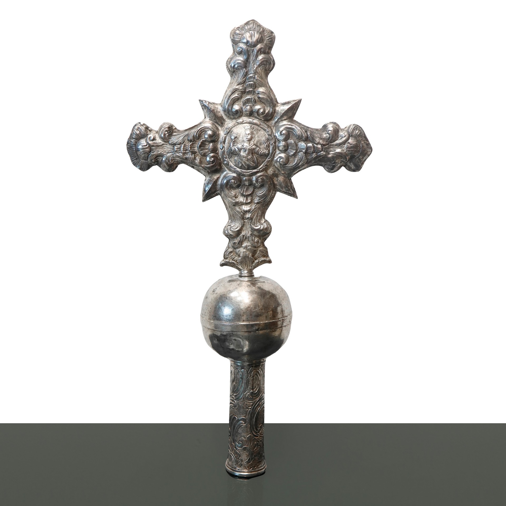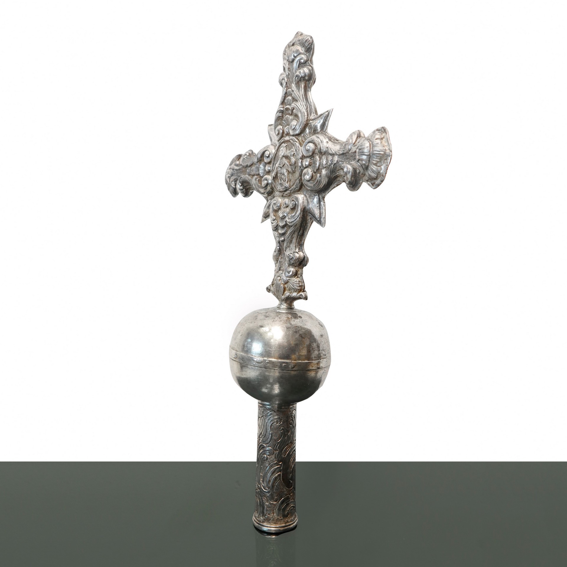 Croce Astile su globo, punzone Messina, XVIII secolo H cm 43, gr 618,