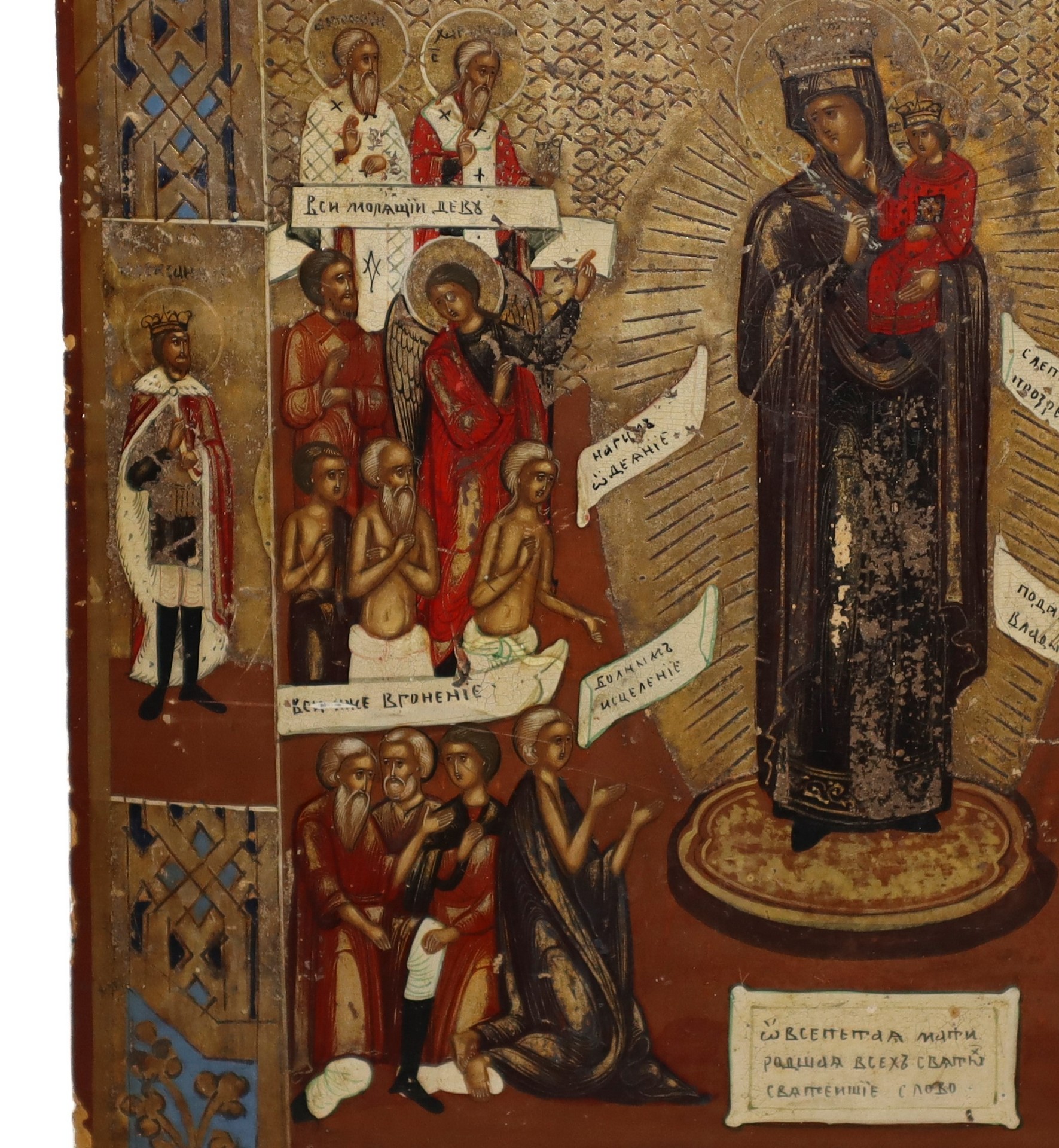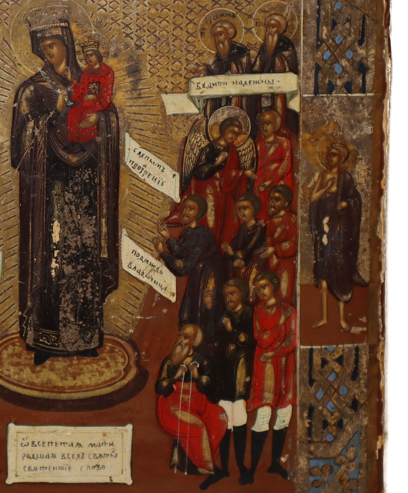 Icona russa raffigurante "Madre di Dio, Gioia di tutti gli oppressi", Primi 19° secolo Cm h 31 x L 28