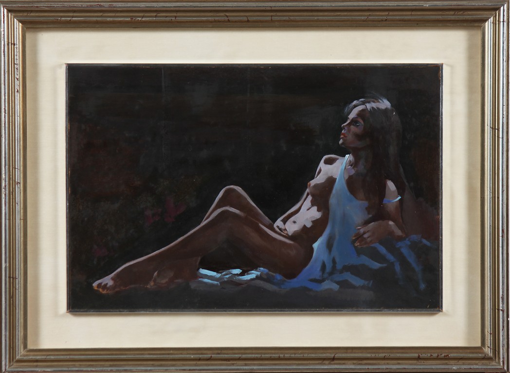 ANONIMO Nudo. Olio su tela . Cm 25,50 x 43,50. Firma illeggibile in basso a destra. Cornice presente