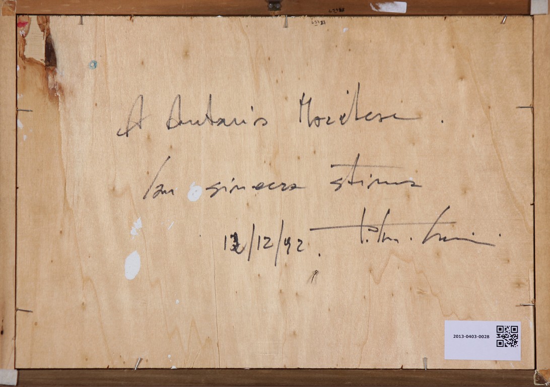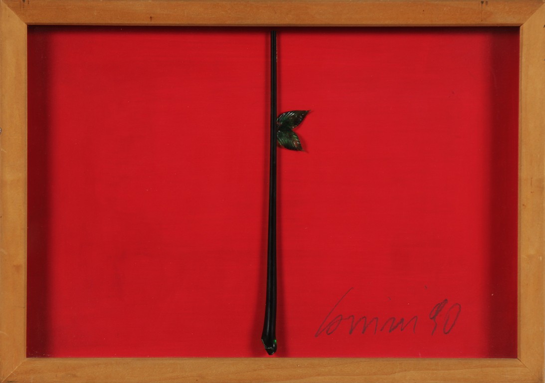 CORSINI VITTORIO (n. 1956) Senza titolo. 1990. Tecnica mista su tavola. Cm 46,00 x 31,00. Firma e data in basso a destra a matita. Al retro dedica. Autentica dell'artista su fotografia. Cornice presente