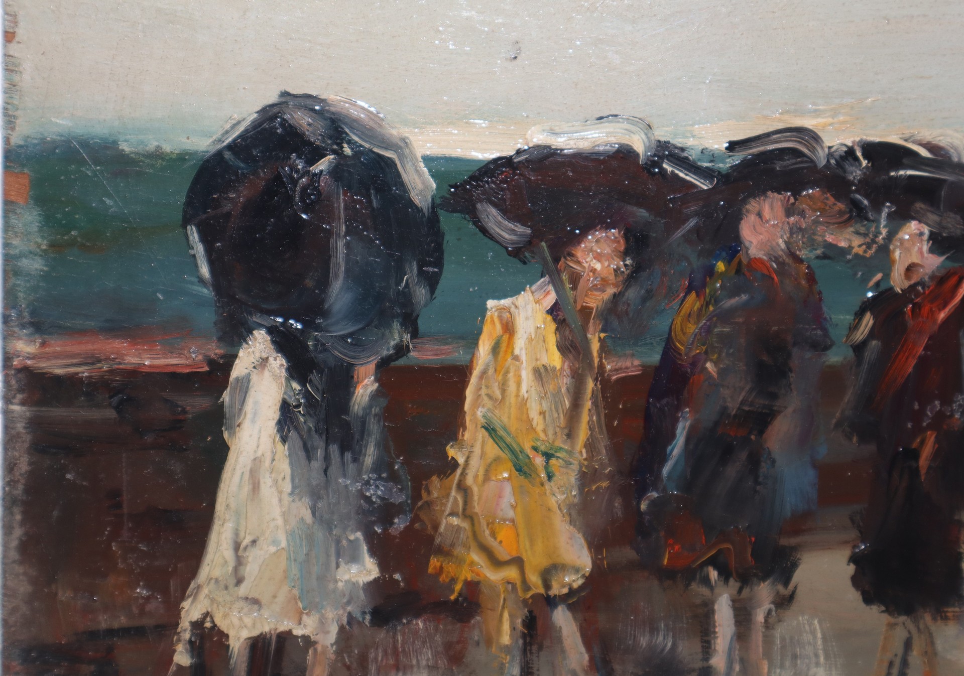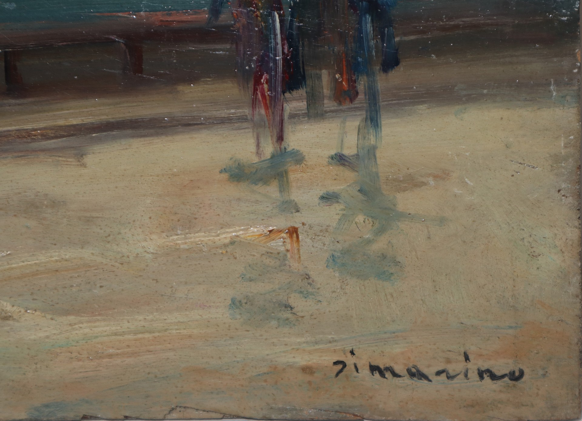 Francesco Di Marino (Napoli 1892-1954) - Giornata di pioggia sul lungo mare Cm 22,5 x 39 Olio su tavola Firmato sul fronte in basso a destra