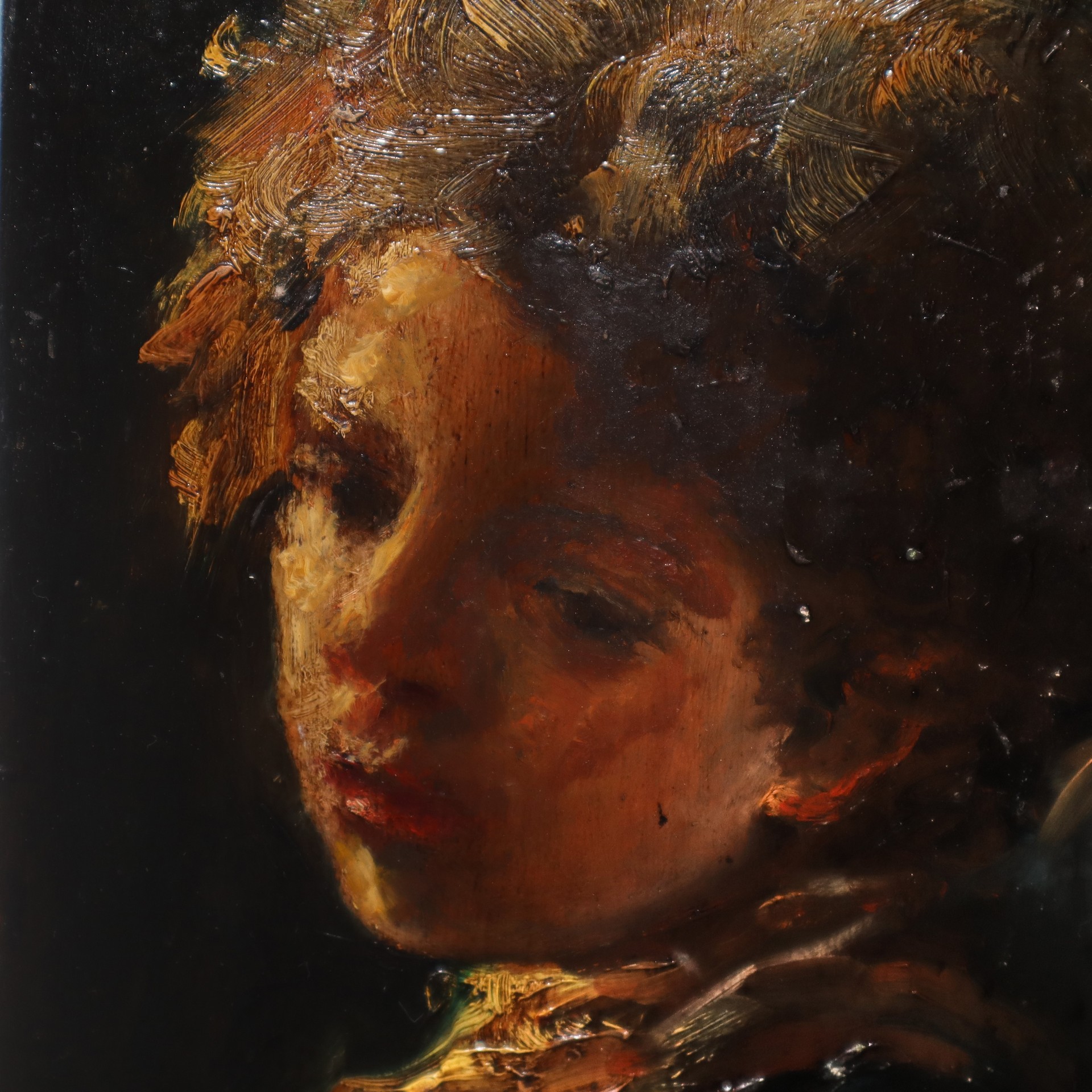 Antonio Mancini (Albano Laziale 1852-Roma 1930) - Giovane ragazzo Cm 28 x 15 Olio su tavola Firmato sul fronte in basso a destra