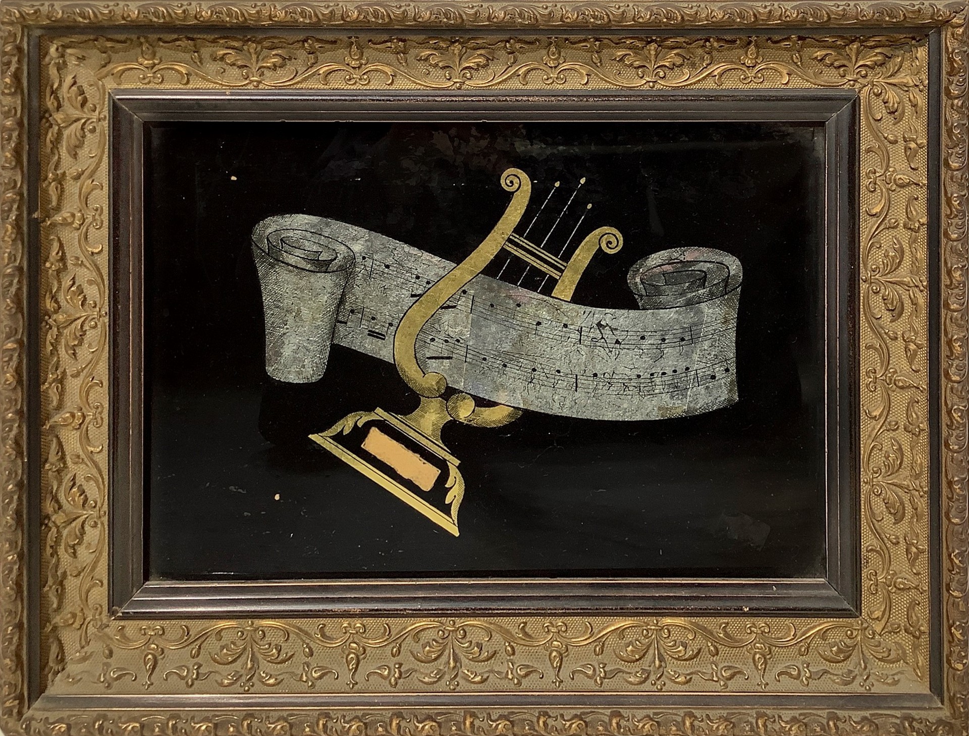 Spartito musicale, Fine 19° secolo Cm 19x27 , in cornice 27x35 Papier paint su vetro