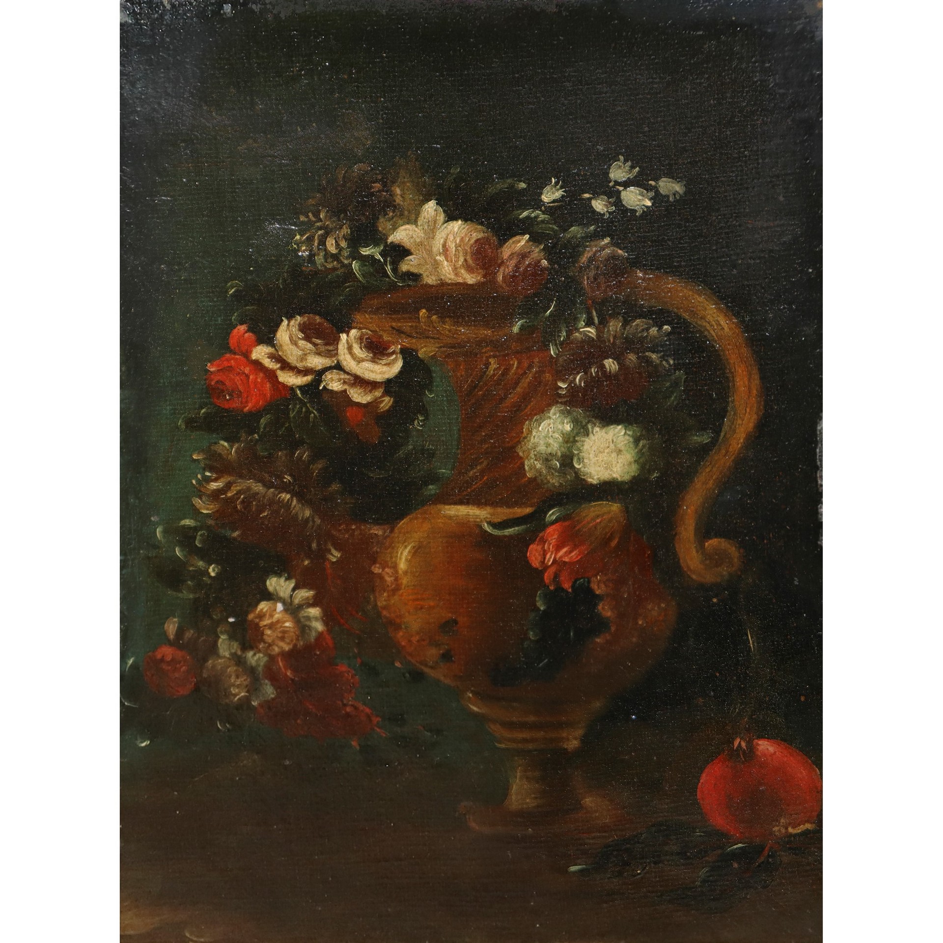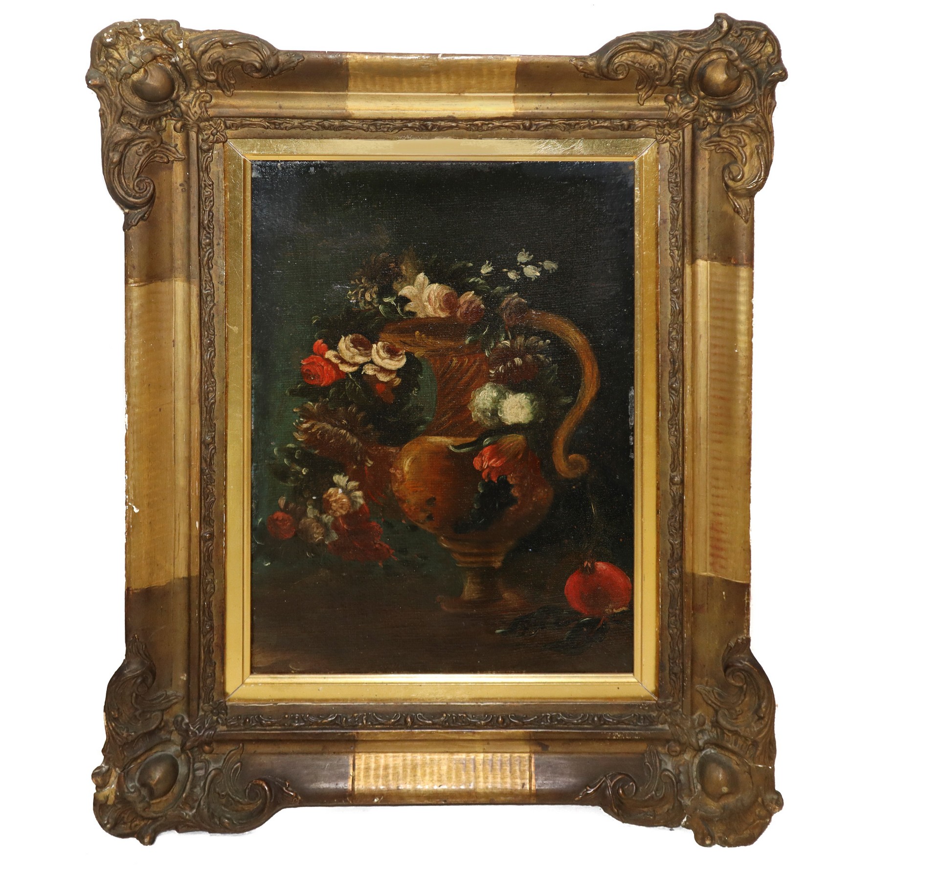 Natura morta con vaso di fiori e melograno Cm 35 x 25 in cornice H cm 50 x 40