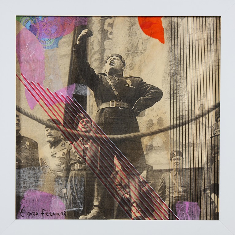 FERRARI ENZO Senza titolo. Tecnica mista su tavola. Cm 60,00 x 60,00. Firma in basso a sinistra. Autentica dell' artista su fotografia.Al retro firma per autentica e timbro associazione nazionale Amici del il Quadrato. Cornice presente
