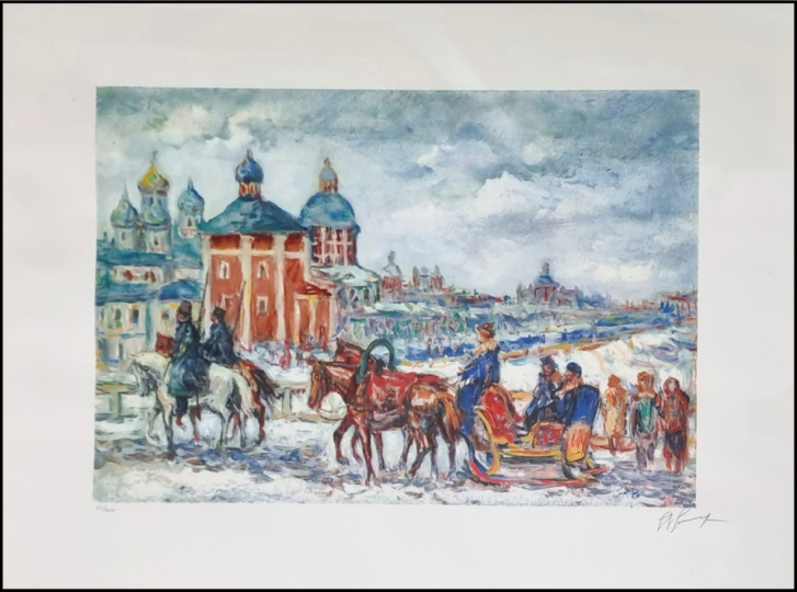 GONZAGA GIOVAN FRANCESCO Milano 1921 - 2007 "Sulla strada di Odessa" Serigrafia su carta cm 65x87 del 1999. Firma e timbro sul fronte in basso a destra, tiratura 43/300 a sinistra. Certificato di autenticità a cura della Telemarket.