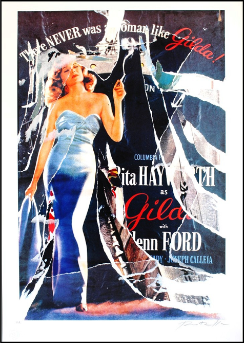 ROTELLA MIMMO Catanzaro 1918 - Milano 2006 "Gilda" Multiplo décollage e strappi di manifesto serigrafico su cartoncino pesante cm 70x100, del 2000-2009. Firmato sul fronte in basso a destra, tiratura P.A. Opera pubblicata sul catalogo "Mimmo Rotella Multiples décollage".