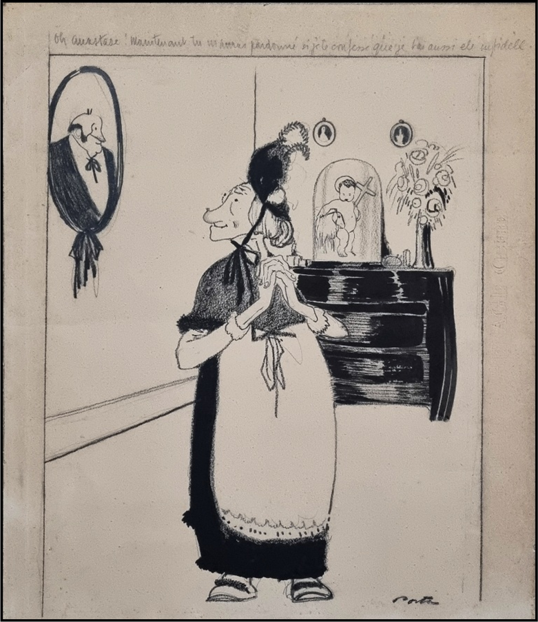 PORTAS ERNESTO Barcellona 1938 "Confessione" Disegno a matita grassa cm 33x38. Firmato sul fronte in basso a destra.