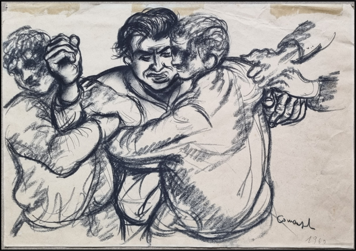 COMENSOLI MARIO Lugano 1922 - Zurigo 1993 "Rissa" Carboncino e matita su carta cm 49x34 del 1960. Firmata e datata sul fronte in basso a destra. (Presenta difetti).