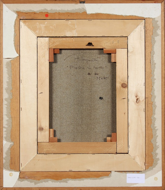 LONGARETTI TRENTO (n. 1916) Madre in rosso. Olio su tela . Cm 35,00 x 45,00. Firma in basso a destra. Al retro firma e titolo. Autentica dell' artista su fotografia. Cornice presente